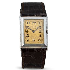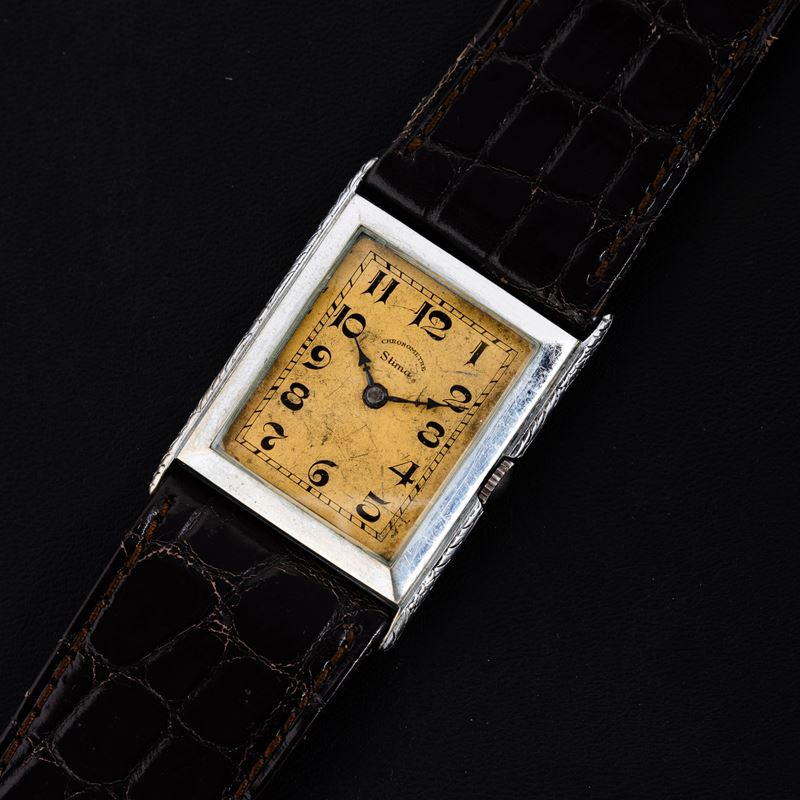 Oversize di forma in acciaio, carica manuale, quadrante argentè fanè con numero Decò 33x30 mm