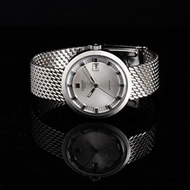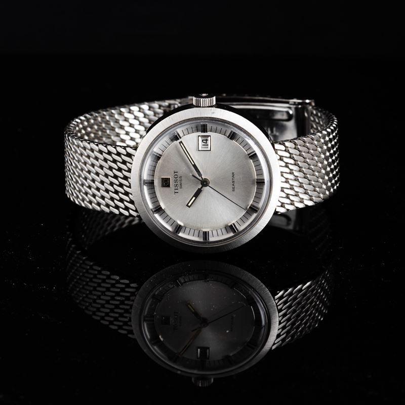 Seastar in acciaio con bracciale integrato carica manuale, quadrante argentè con indicazione della data, 37 mm