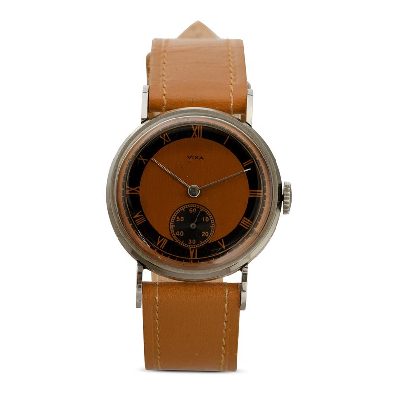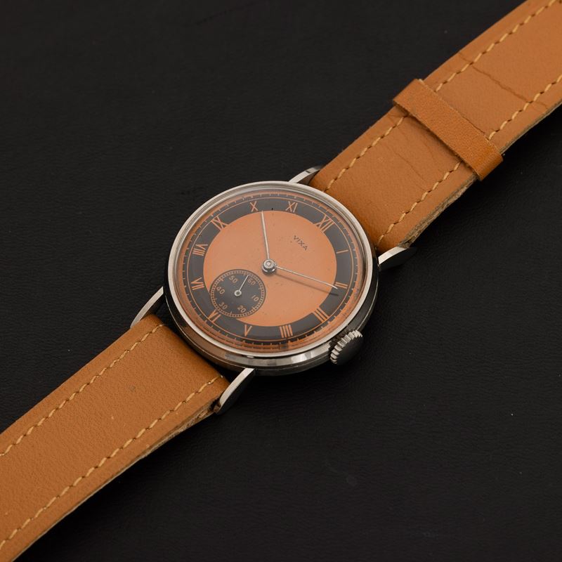 Solo tempo in acciaio, quadrante galvanico Salmone e nero lucido con numeri Romani in contrasto, carica manuale, 32 mm
