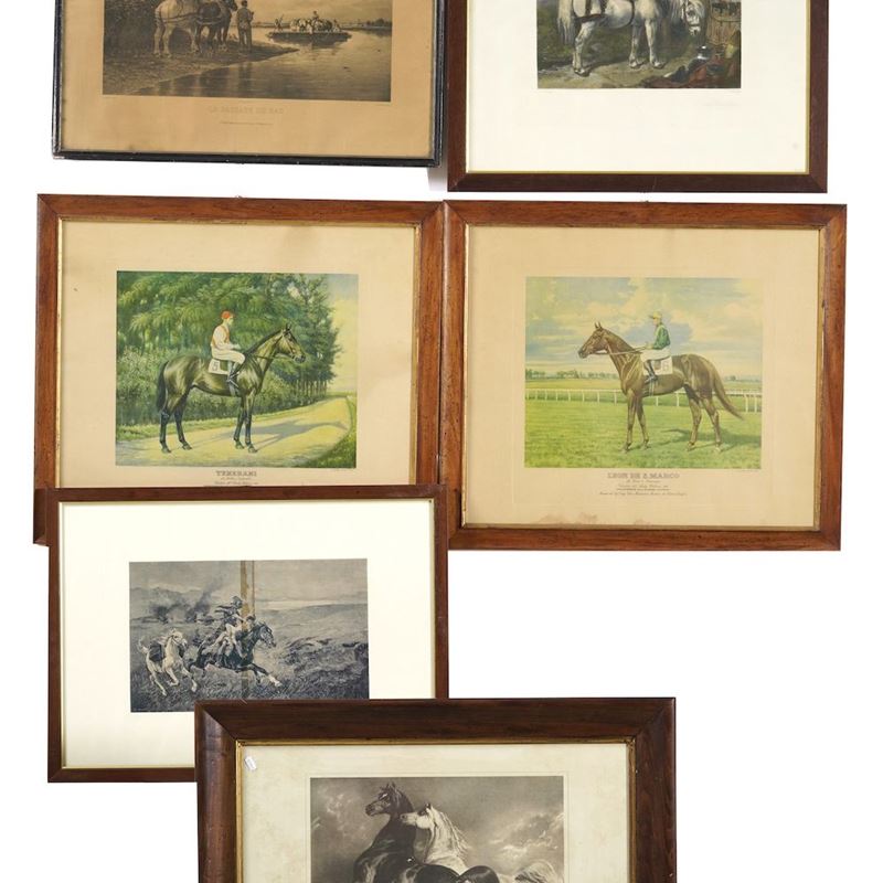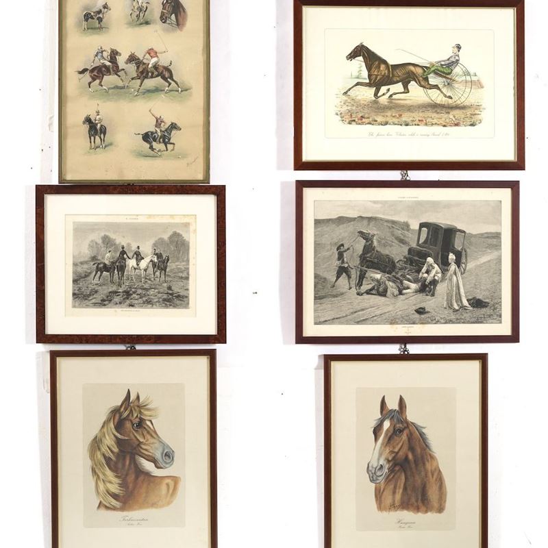 Lotto di stampe e riproduzioni a tema equino