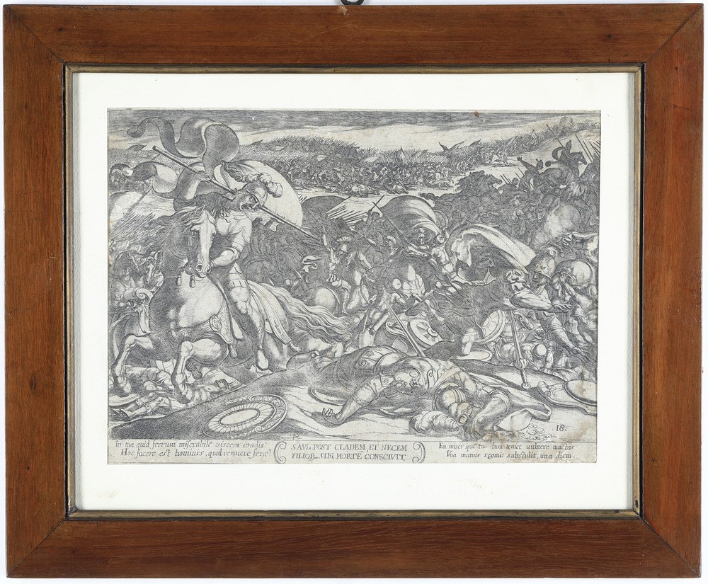 Due stampe raffiguranti battaglie cavalleresche