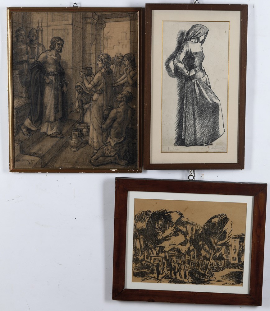Lotto di tre disegni su carta