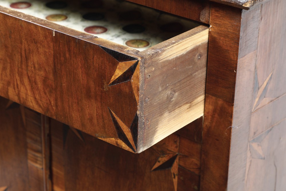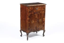 Piccola credenza intarsiata a due ante. XIX secolo