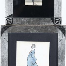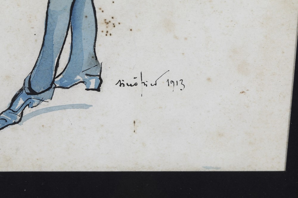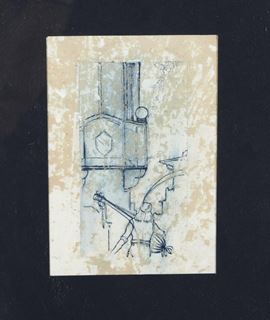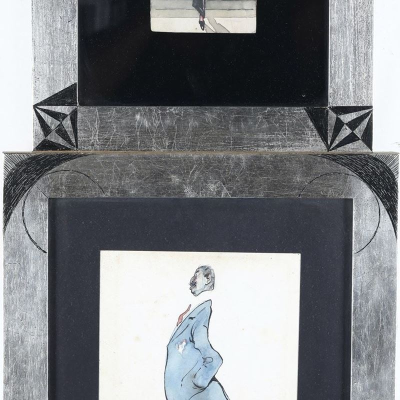 coppia di disegni tecnica mista (china e acquerello?)
