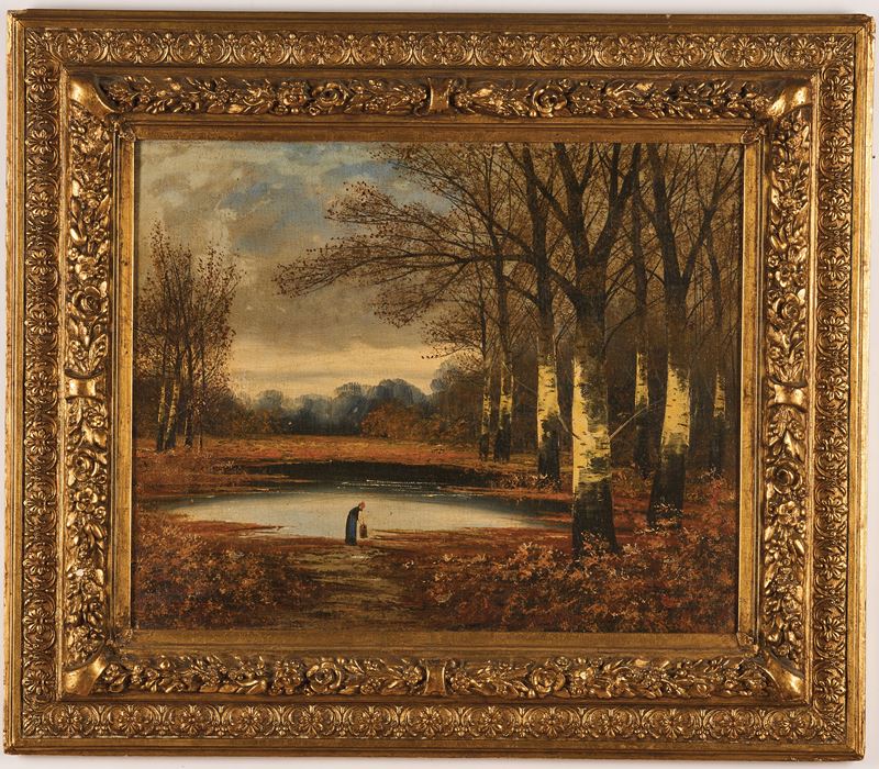 Scuola del XIX secolo Donna in riva al lago