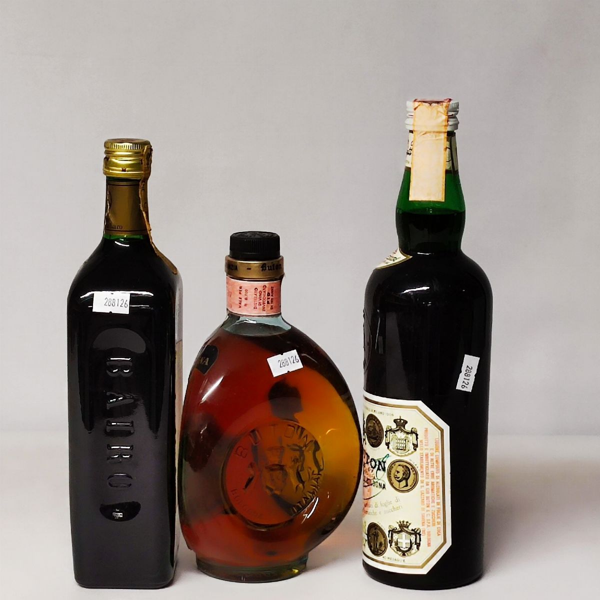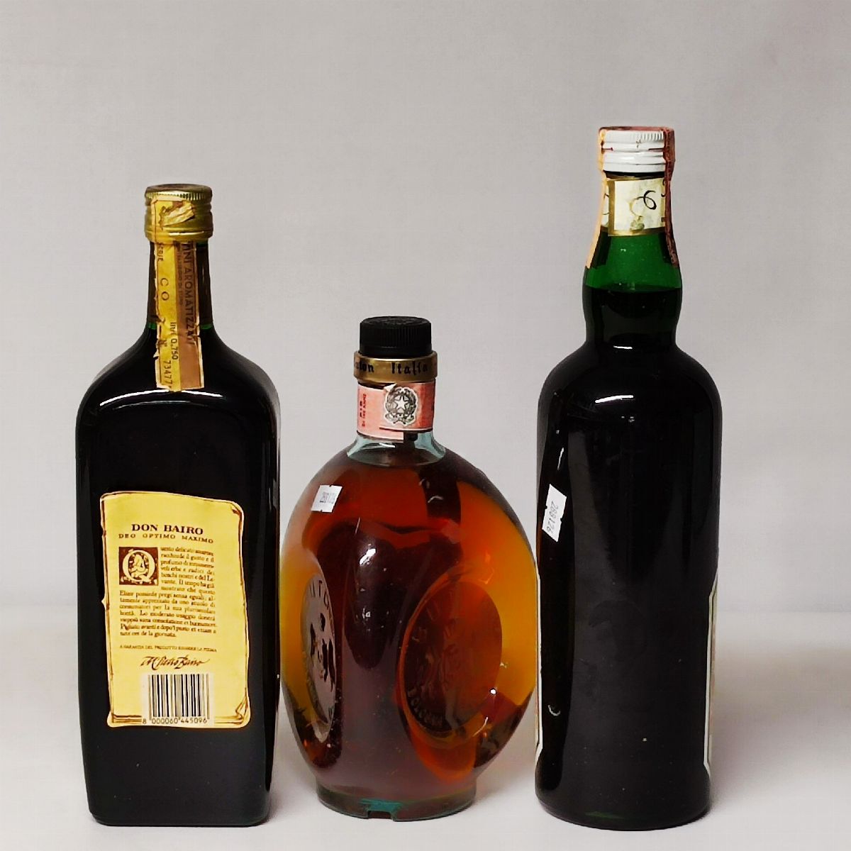 Etichette, capsule e confezioni originali ove presenti con segni d'usura del tempo