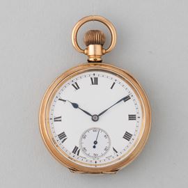 Orologio da tasca inglese Cassa placata in oro, 1890 circa, movimento anonimo svizzero con scappamento ad ancora, da revisionare