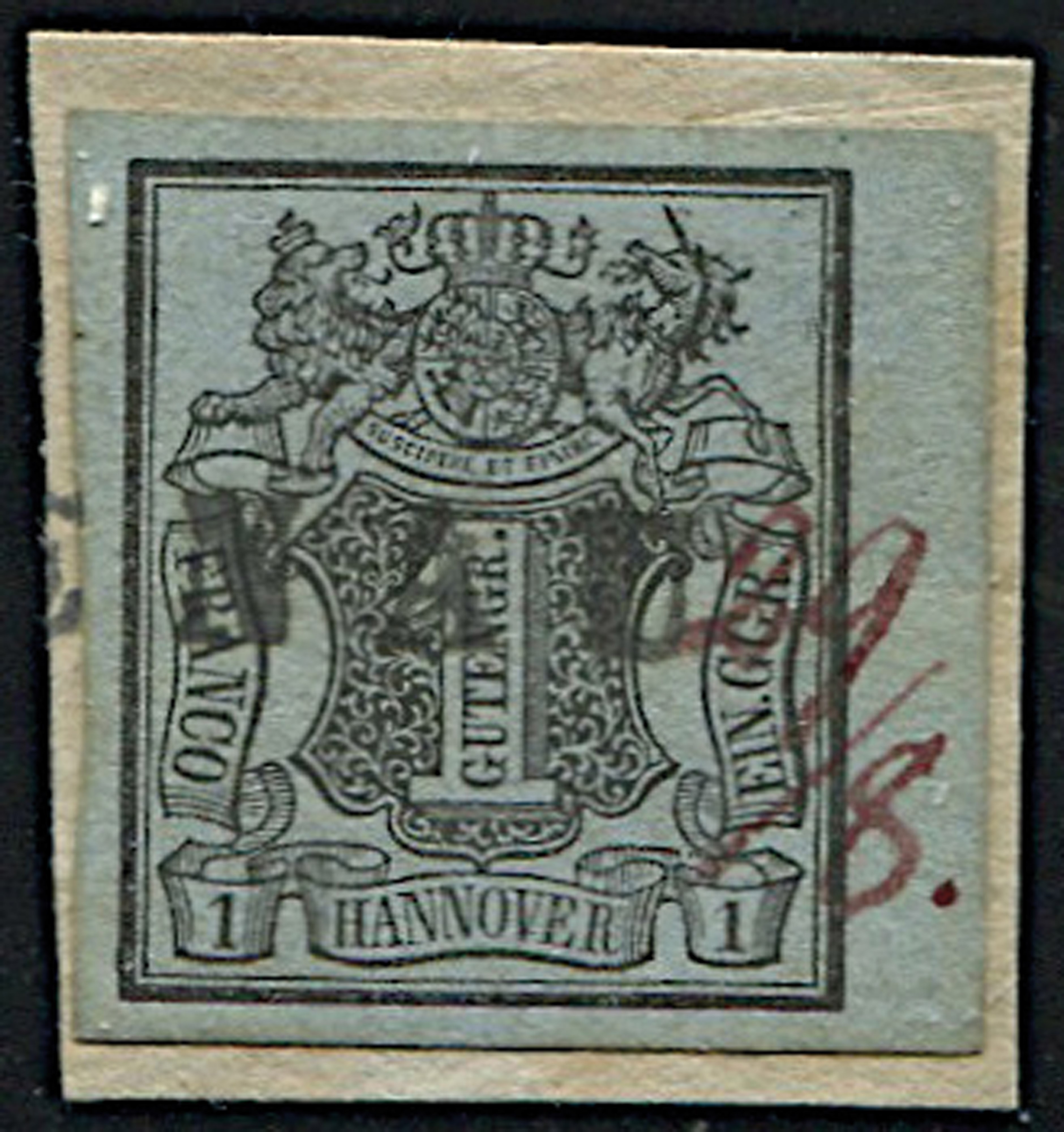 1850, Hannover, 1 g. nero su azzurro