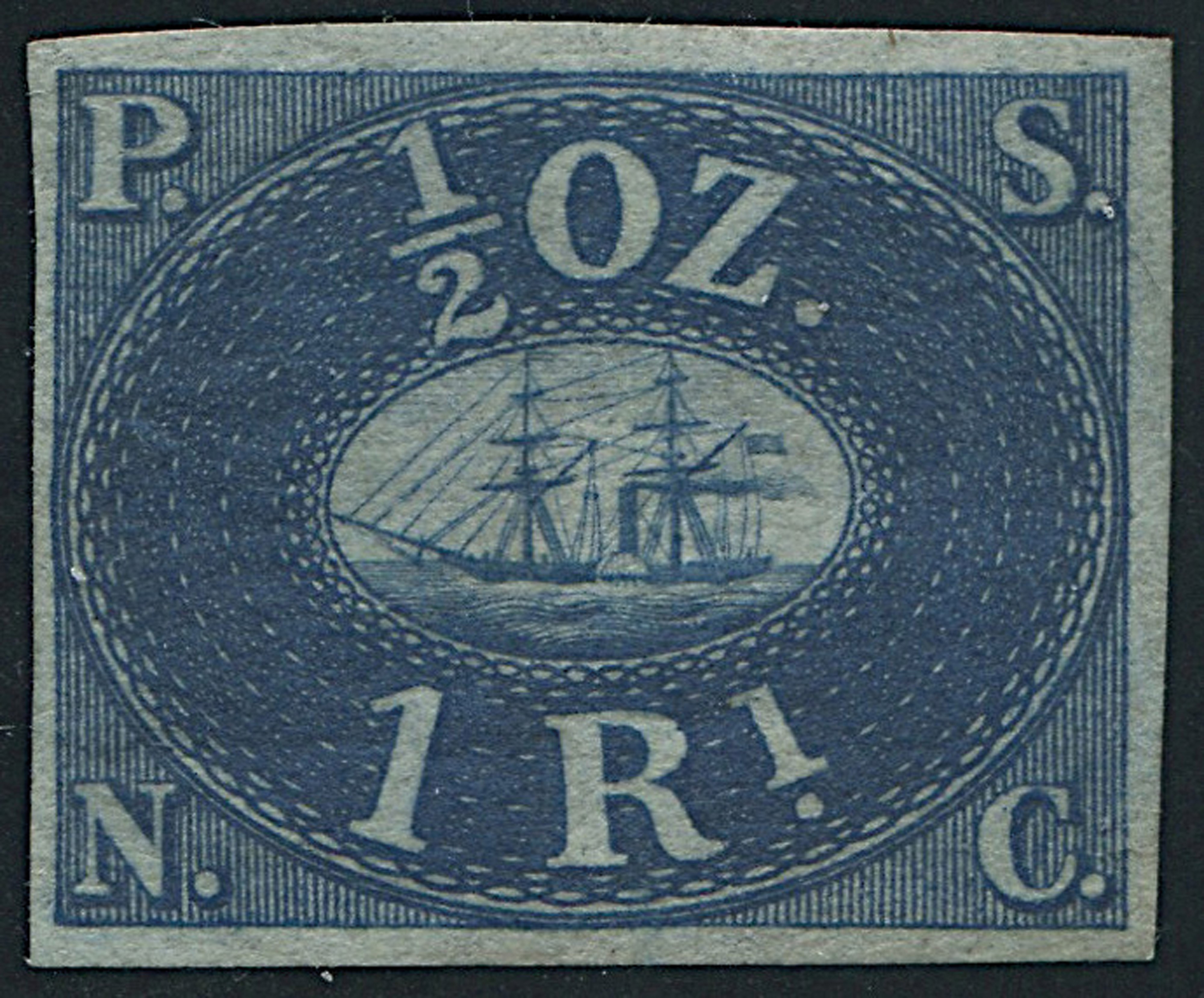 1 r. blue on white paper, never distributed (Yv. 1a). Very fine, unmounted mint.