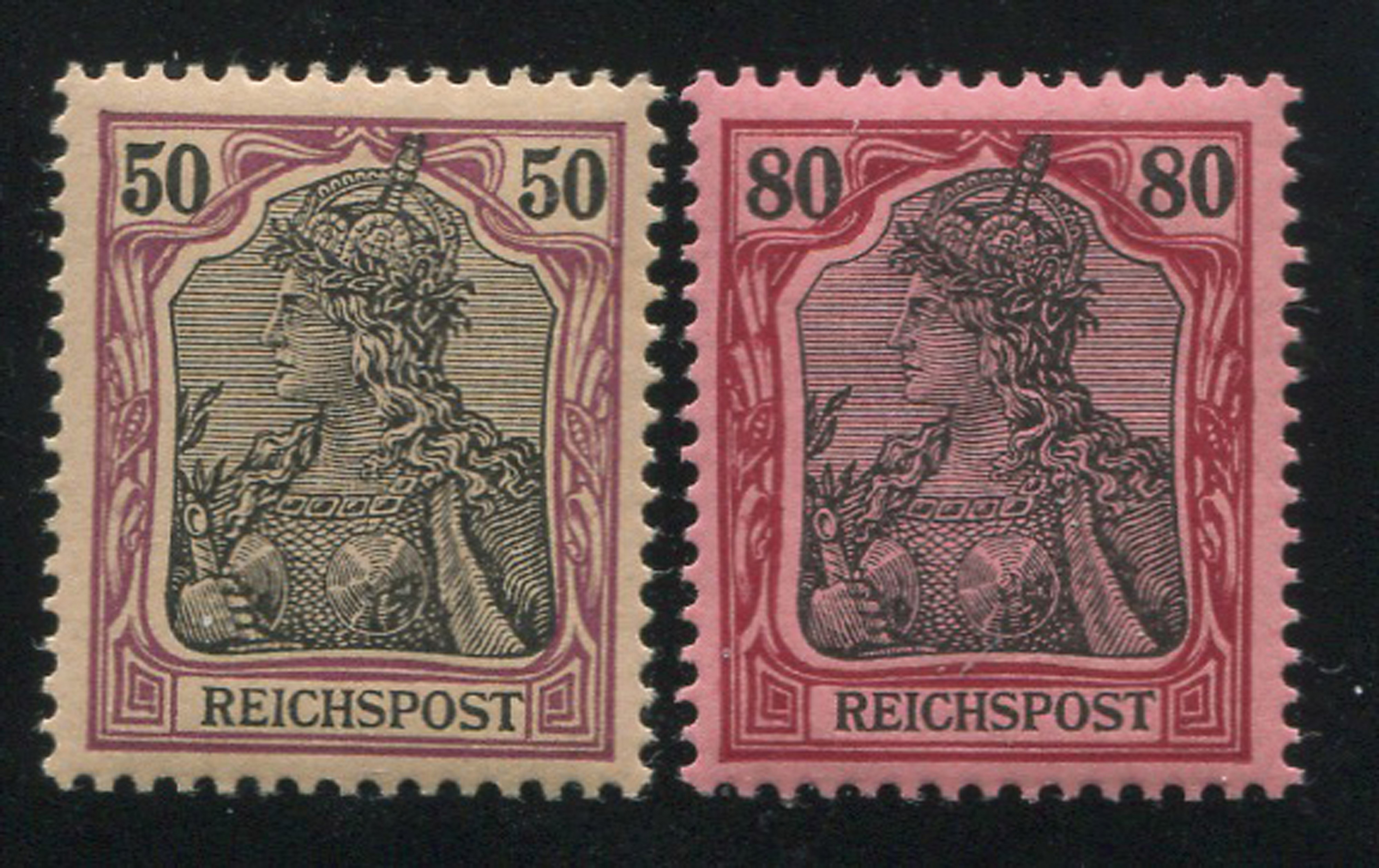 Serie di 10 valori “Reichpost” (Yv. 51/60 - C. Unificato 51/60), leggerissima t. l.