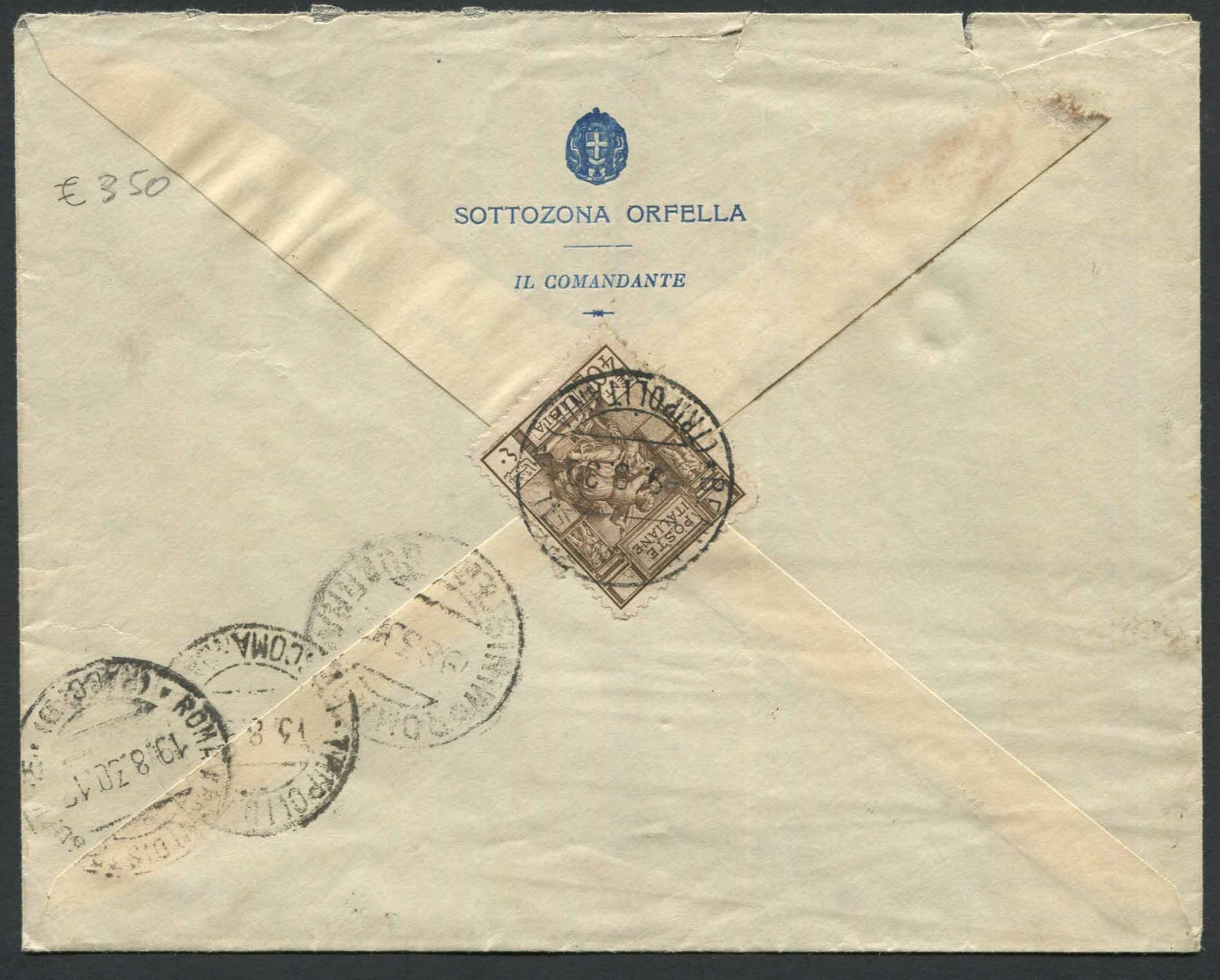 1930, Beni Ulid (Tripolitania), raccomandata per Roma del 9.8.1930.