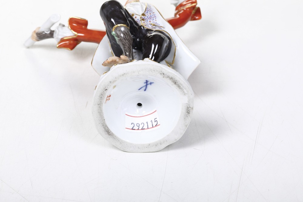 Questa scultura appartiene alla serie della famosissima ed amatissima orchestra di scimmie, composta da 22 figurine, che Johann Joachim Kaendler modellò la prima volta nel 1753 all’apice della sua creatività artistica. Fu proprio a Natale di quell’anno che la marchesa Madame Pompadour, conosciuta per la sua raffinatezza e gran gusto, acquistò da un mercante di Parigi diciannove figurine di questo insieme.