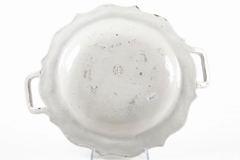 Piatto tondo biansato Pavia, manifattura Guanciroli (?), 1750-1775