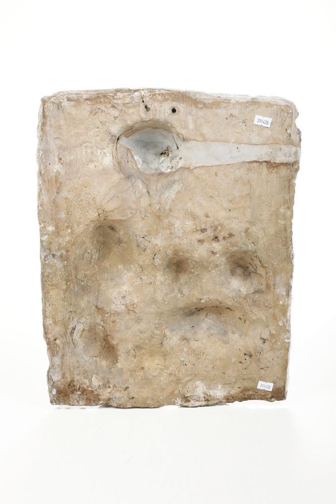di stampatura nel “biscotto”, praticate per alleggerire lo spessore e favorire l’essicamento, quindi la cottura. L’opera raffigura la Vergine che allatta il Bambino, su uno sfondo con ampi tendaggi.