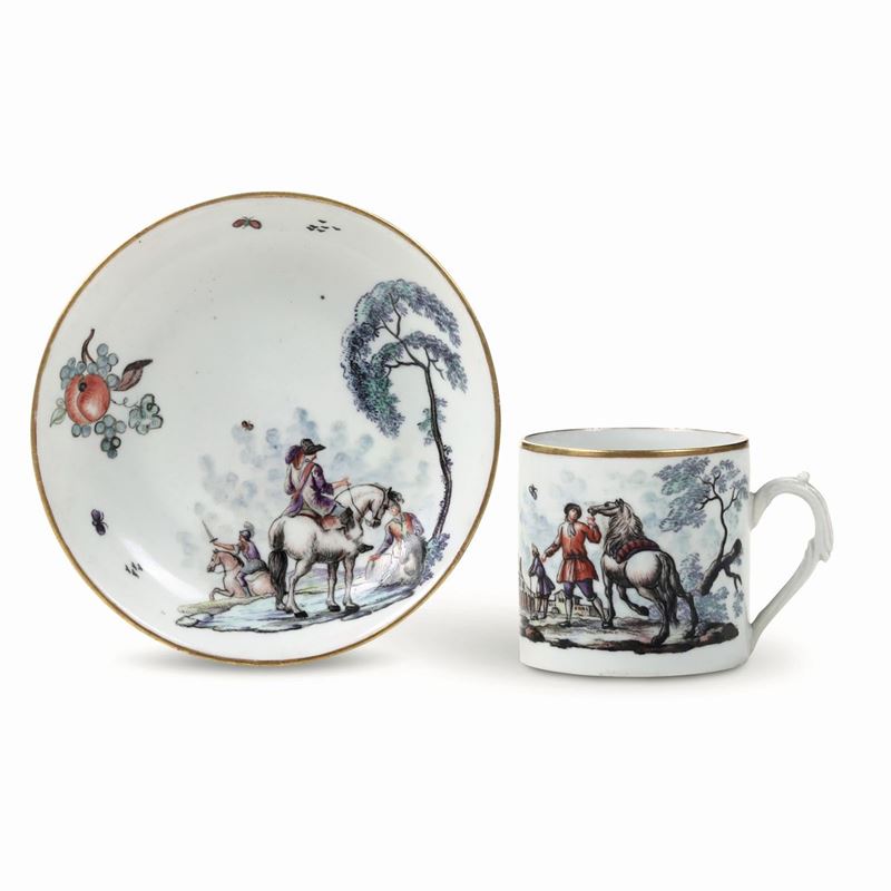 Tazza con piattino a “scene di battaglia” Venezia, Manifattura Cozzi, 1770-1780