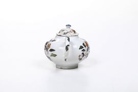 Maiolica policroma a gran fuoco. Marca: assente. Altezza cm 10,4. Conservazione: ottima; coperchio probabilmente non pertinente