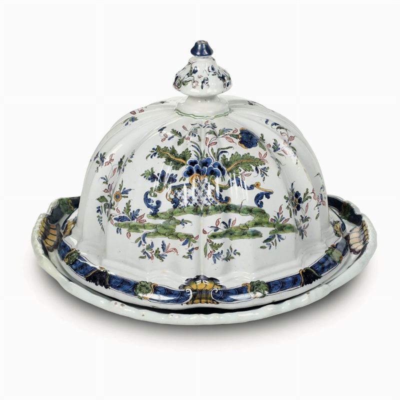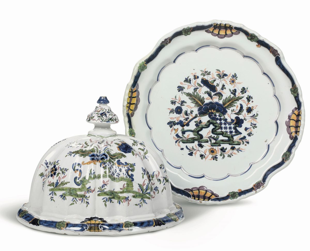 Una campana copri vivande e un piatto Nove, Manifattura Pasquale Antonibon, prima metà del XVIII secolo