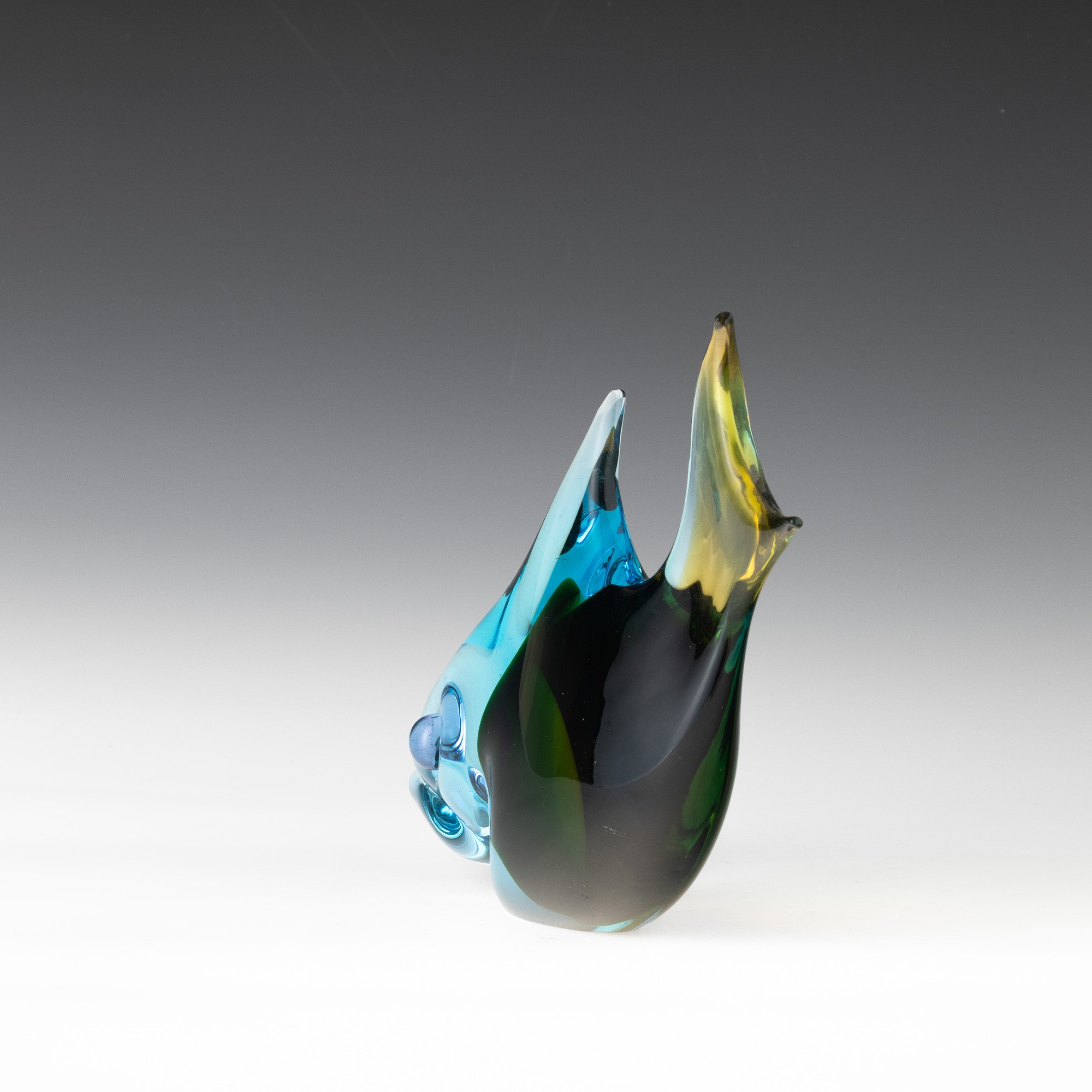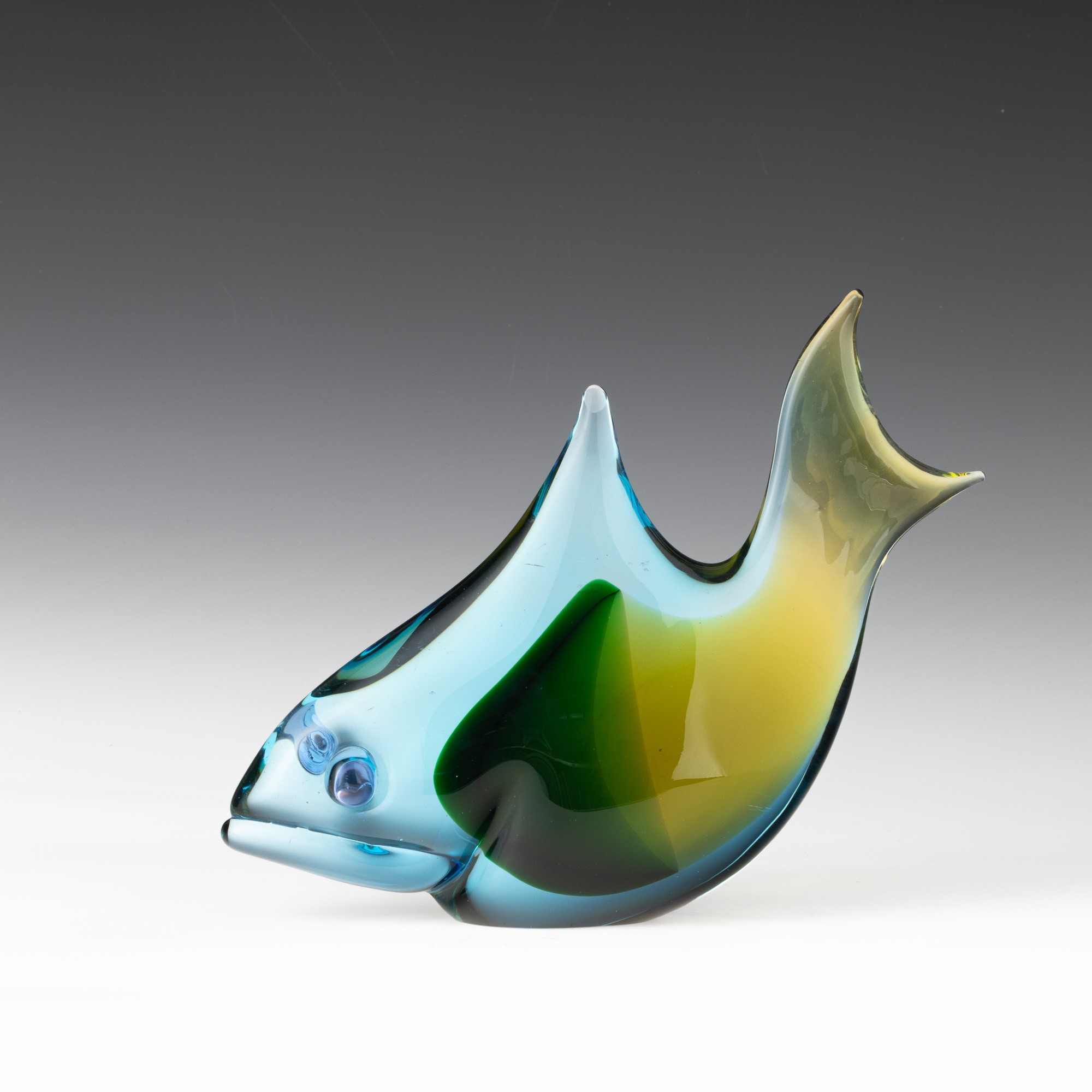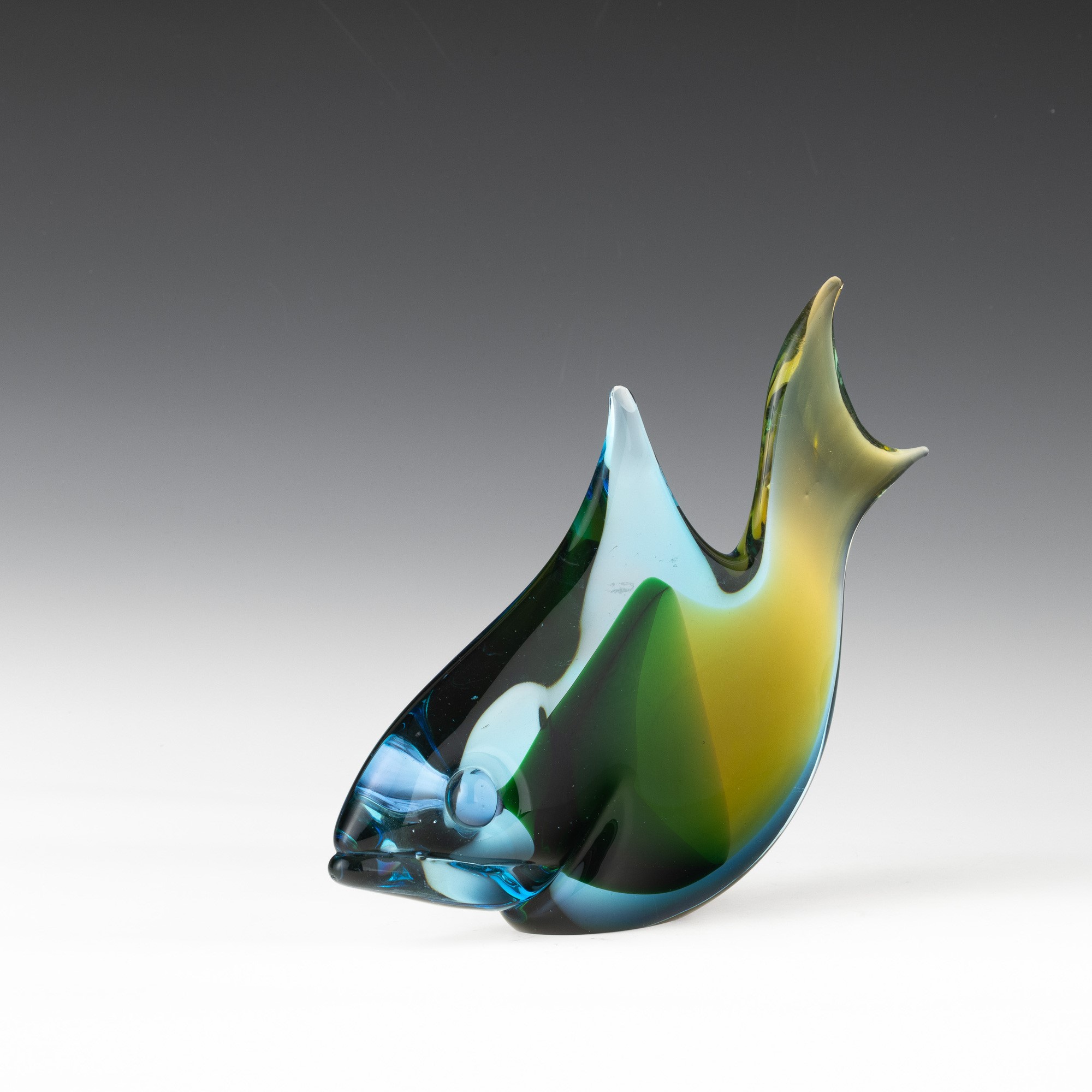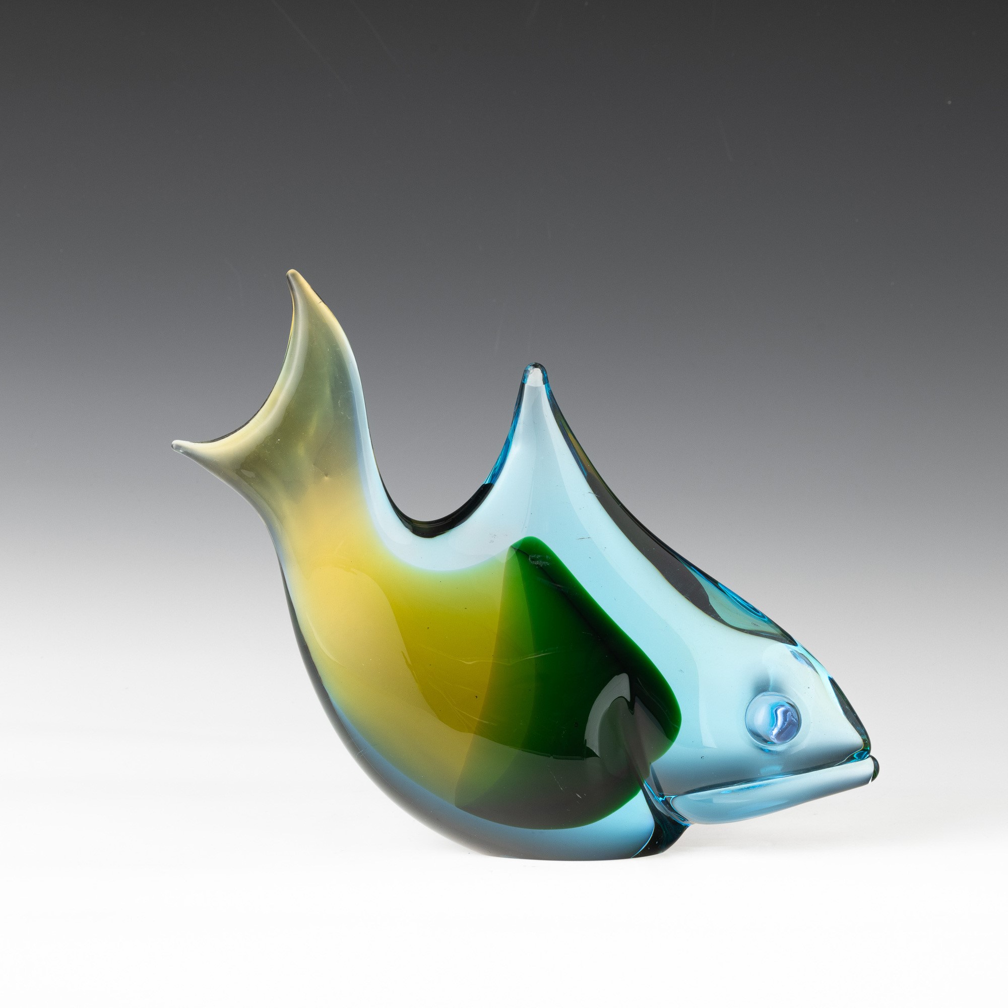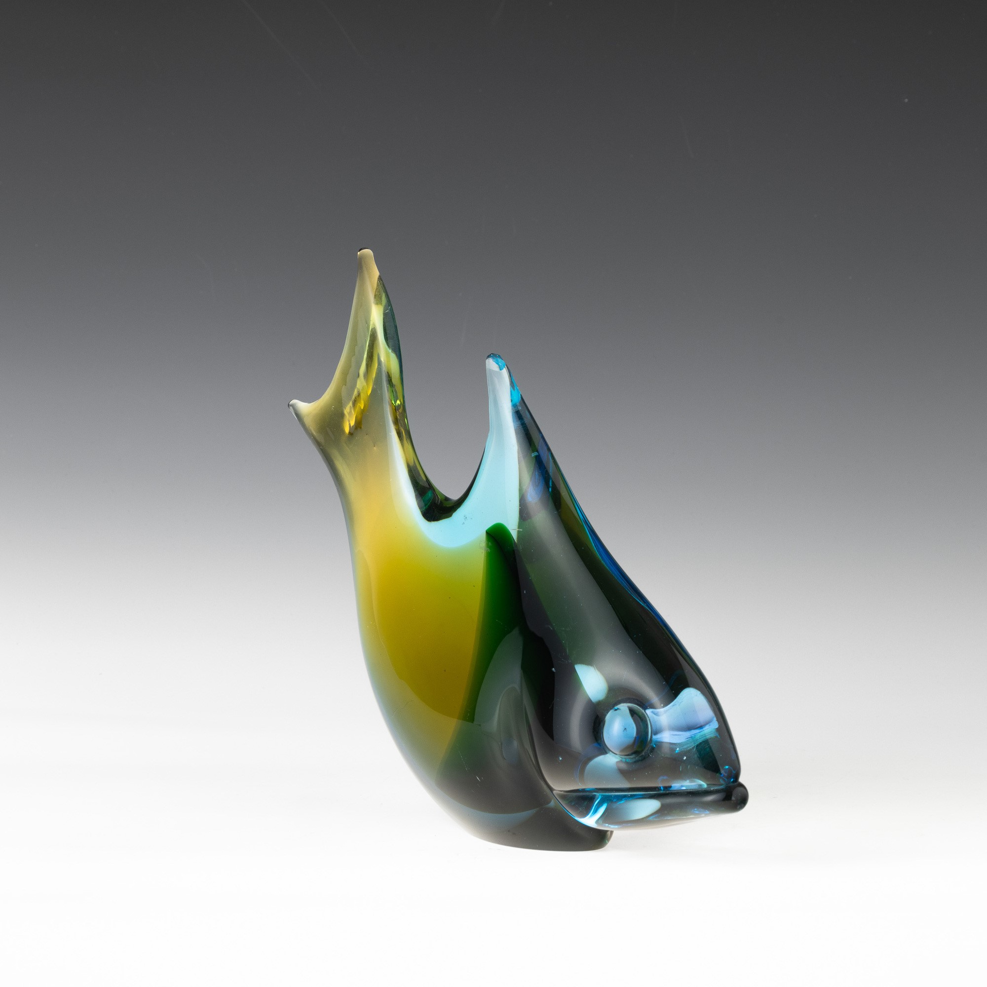 Soprammobile in forma di pesce in vetro sommerso modellato a caldo.