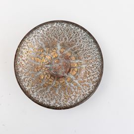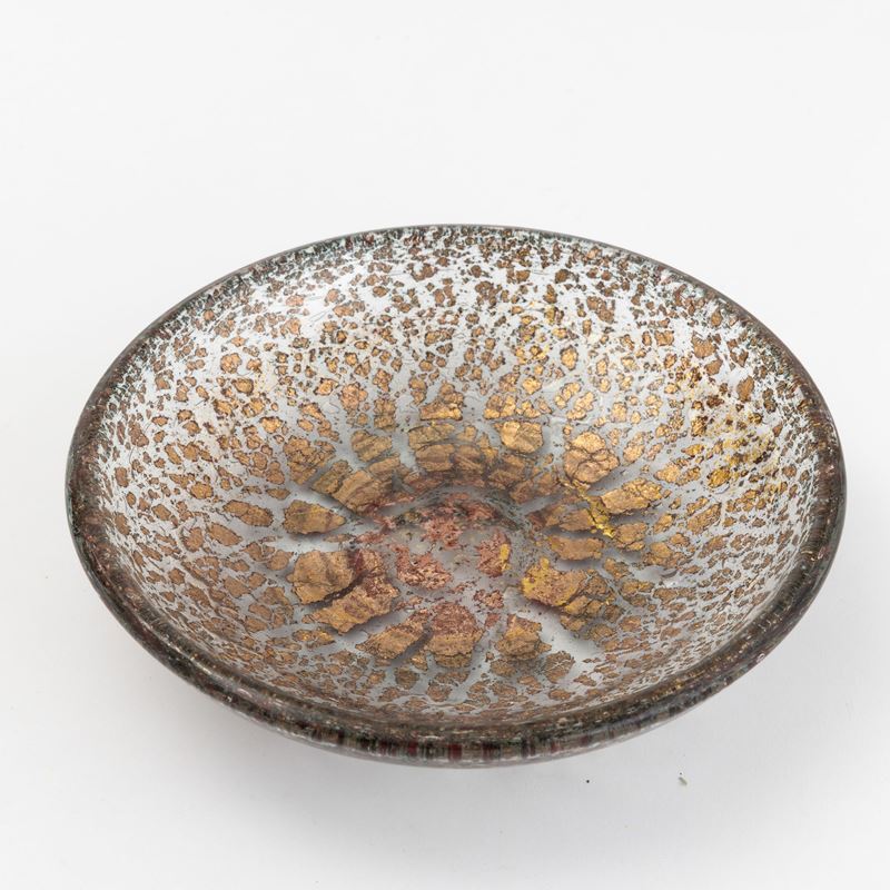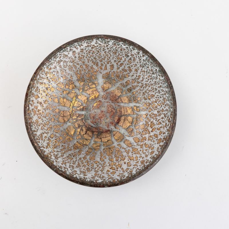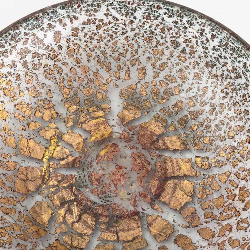 Piatto serie Porpora Oro in vetro soffiato con inclusioni di lamine policrome e foglia oro.