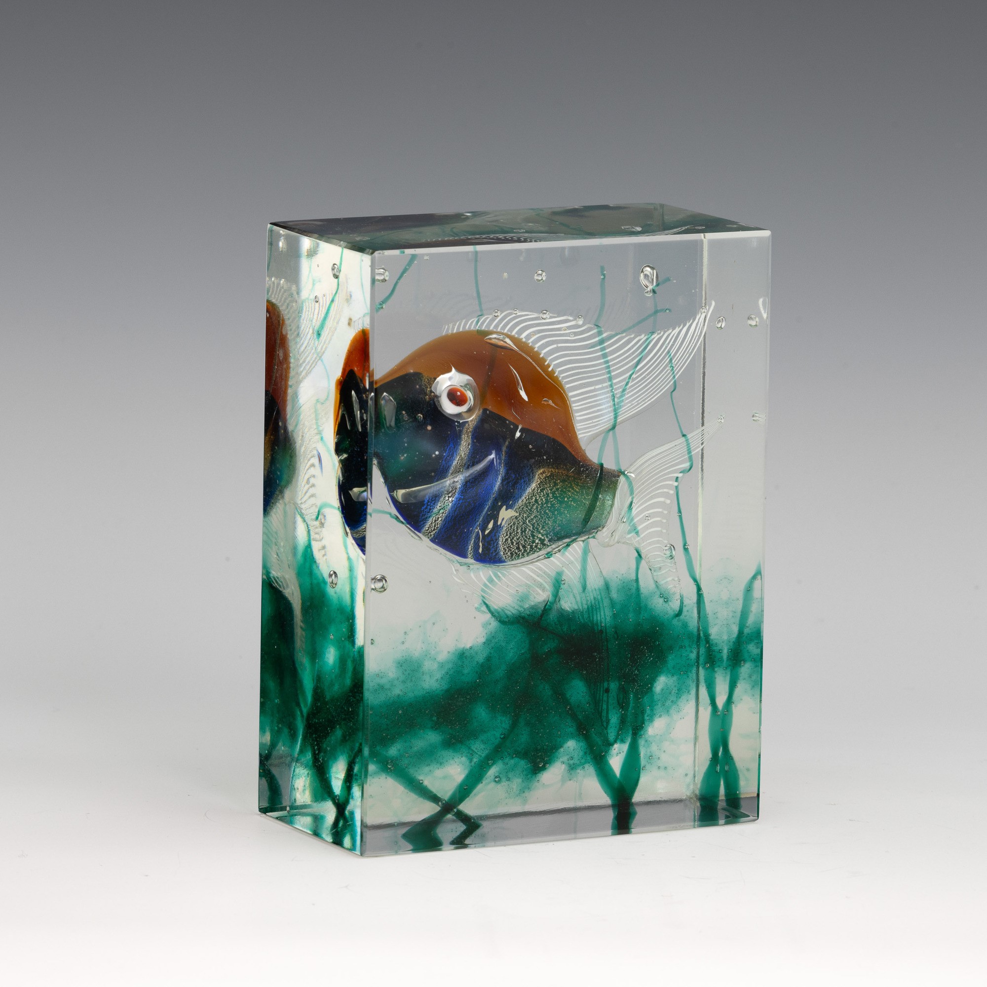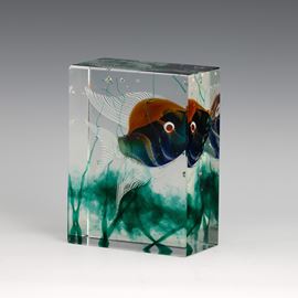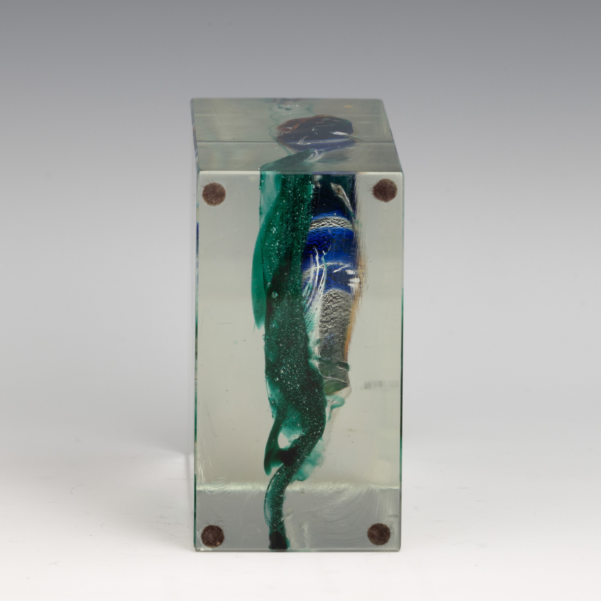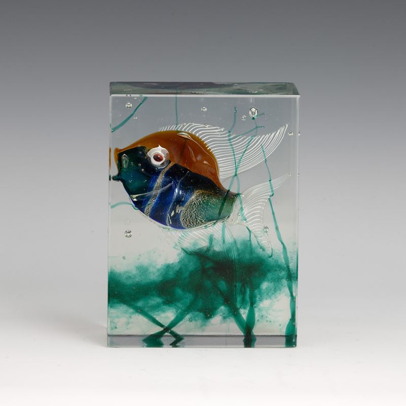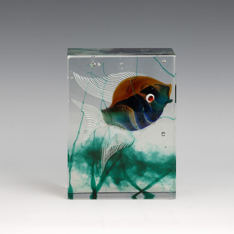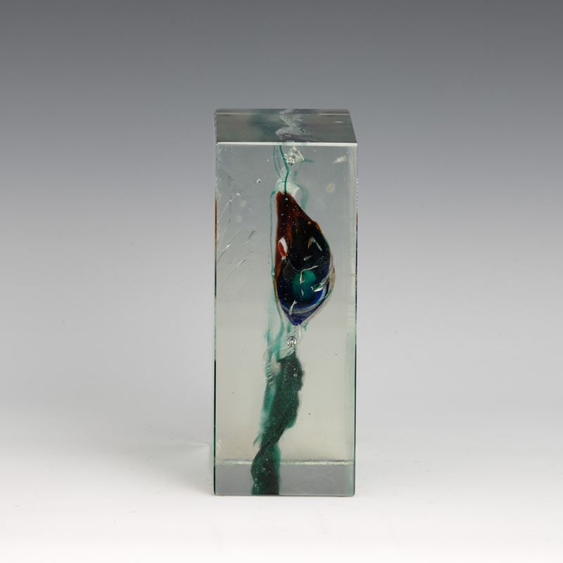 Placca rettangolare in vetro cristallo con acquario in vetro policromo sommerso.