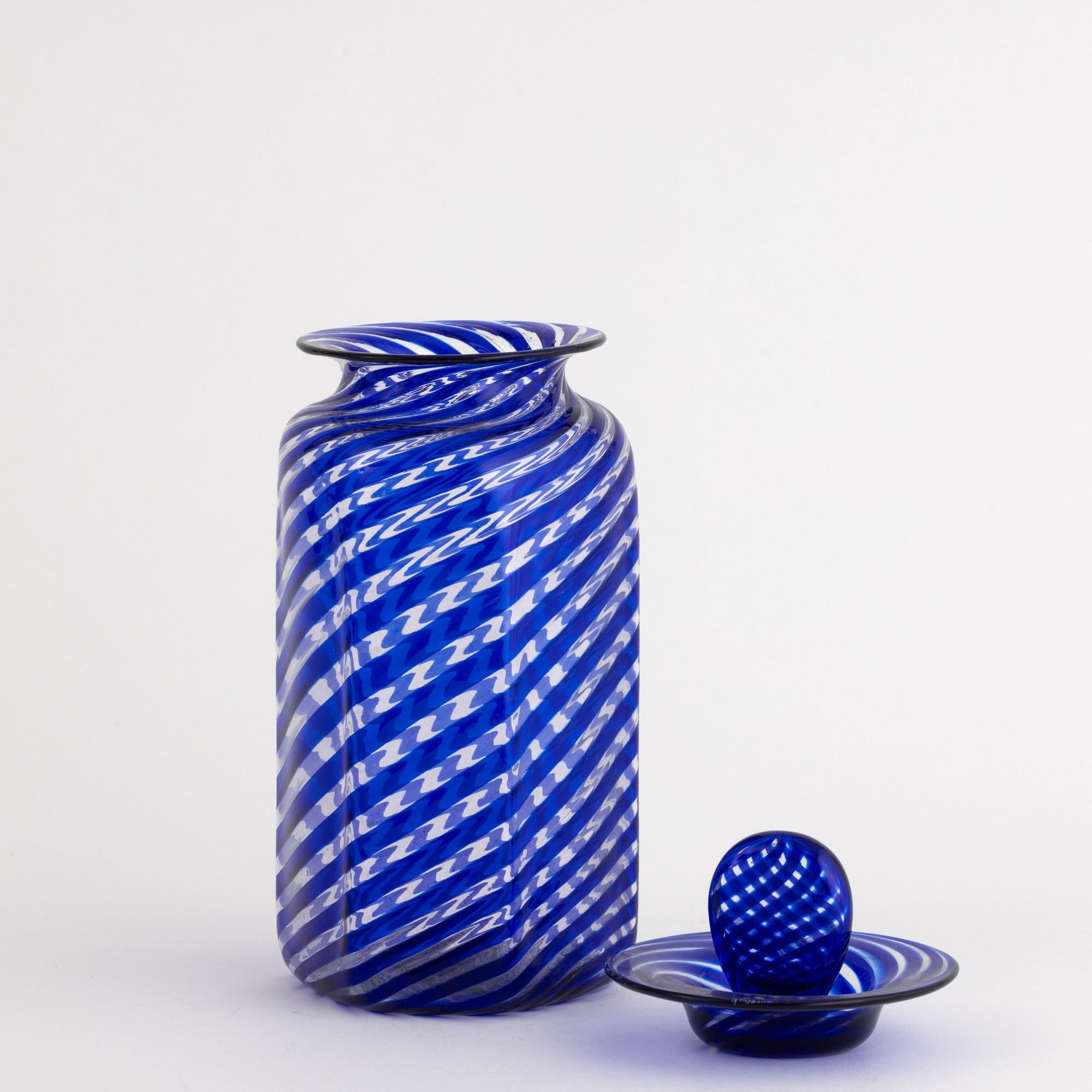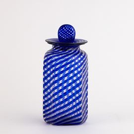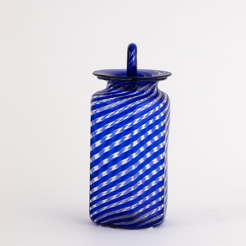 Vaso con coperchio a sezione esagonale con decoro di canne policrome.