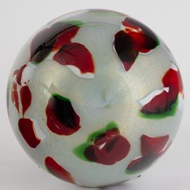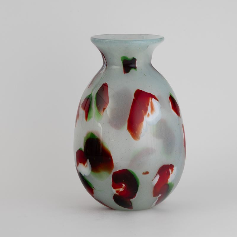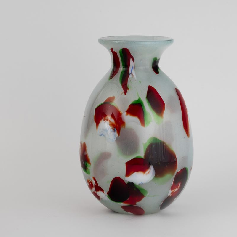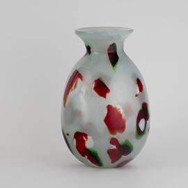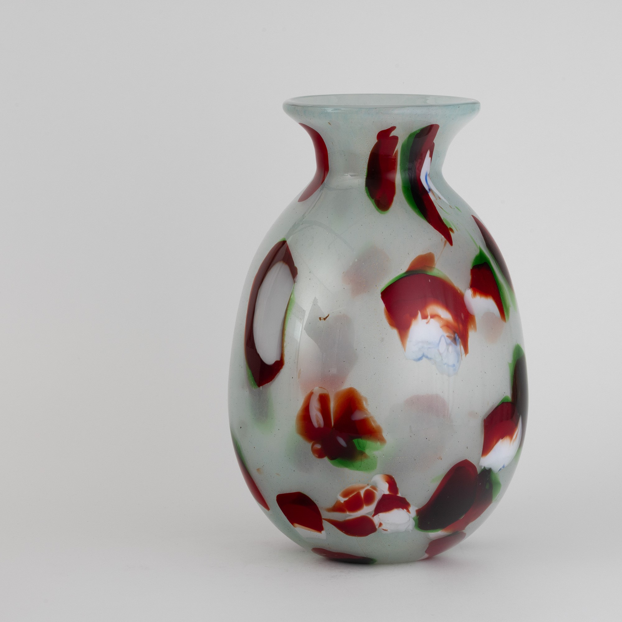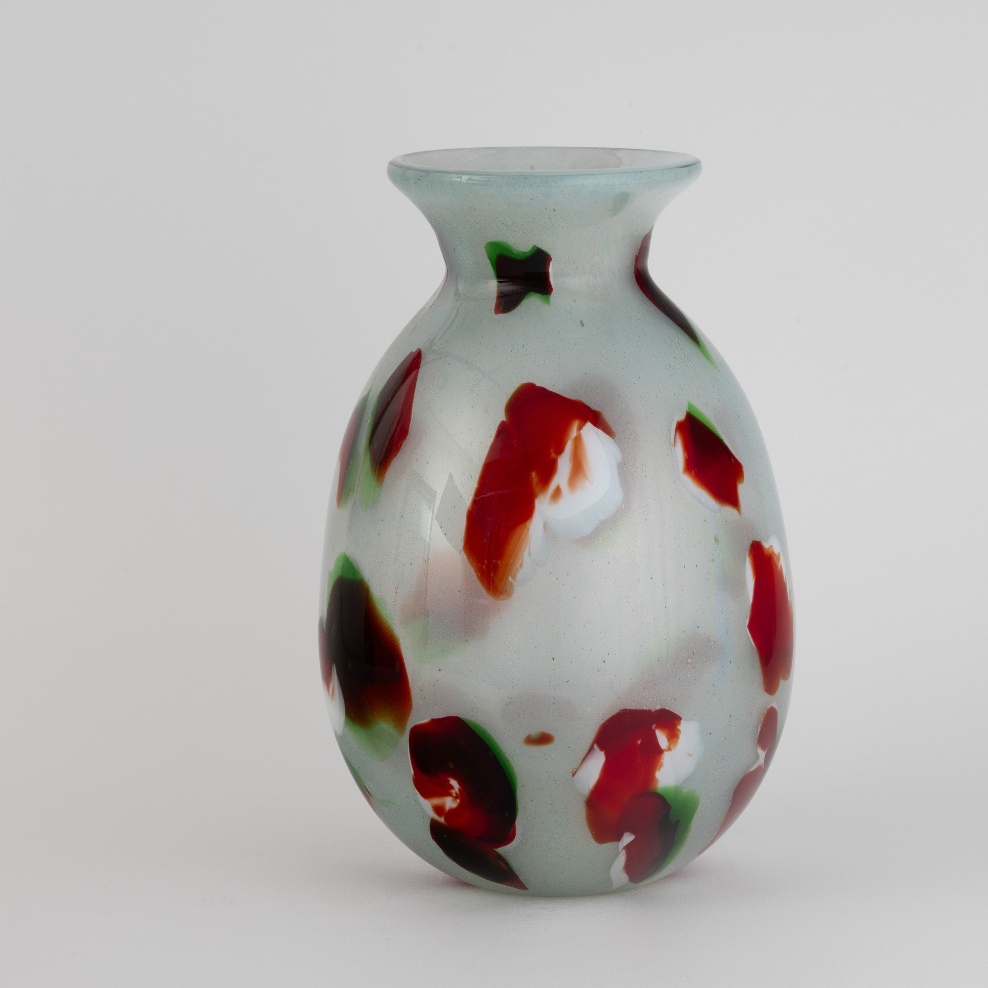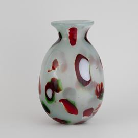 Grande vaso in vetro soffiato con decoro di macchie policrome e foglia oro.