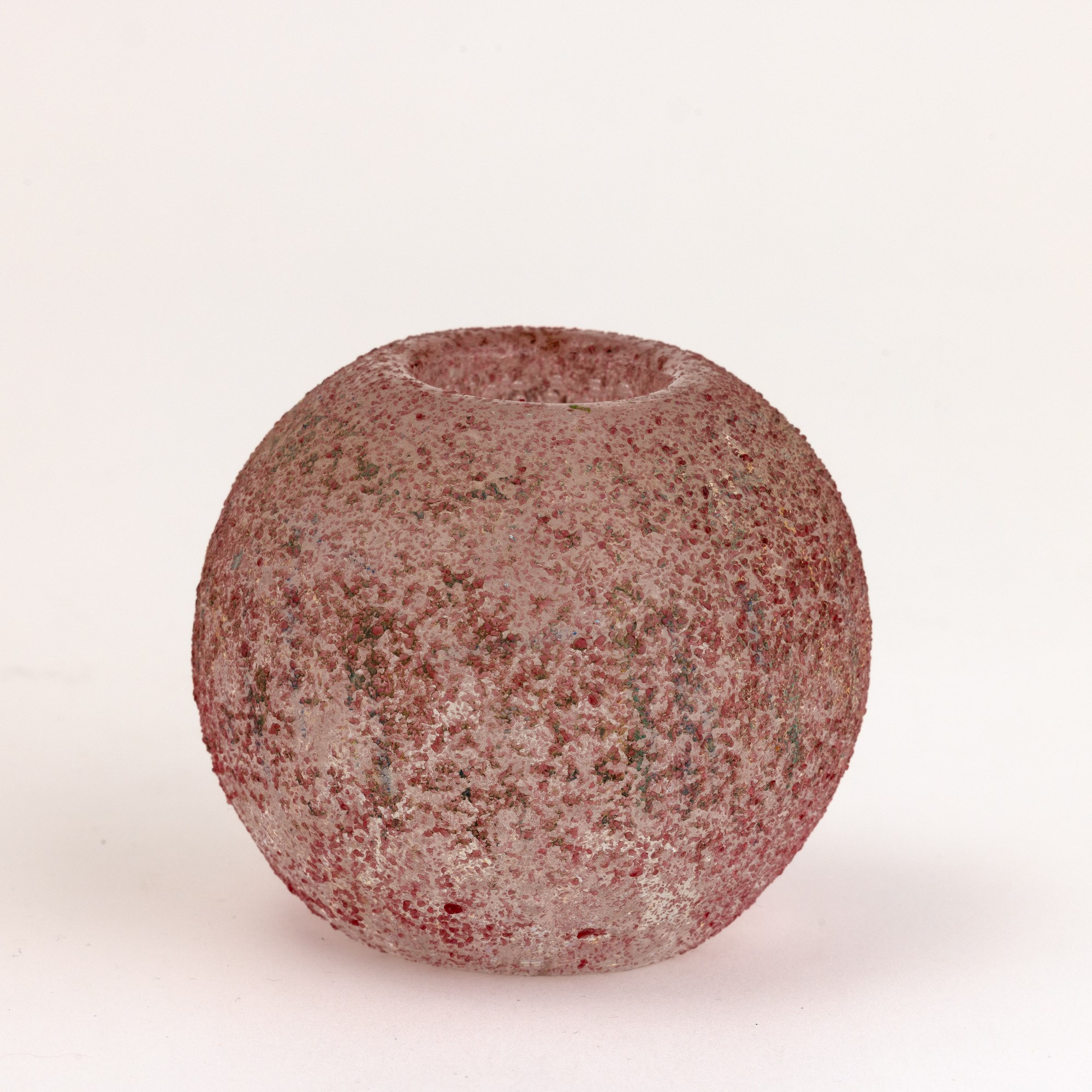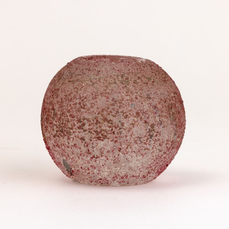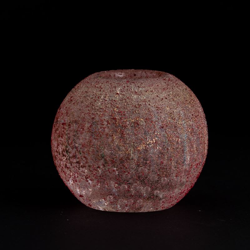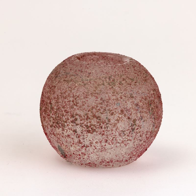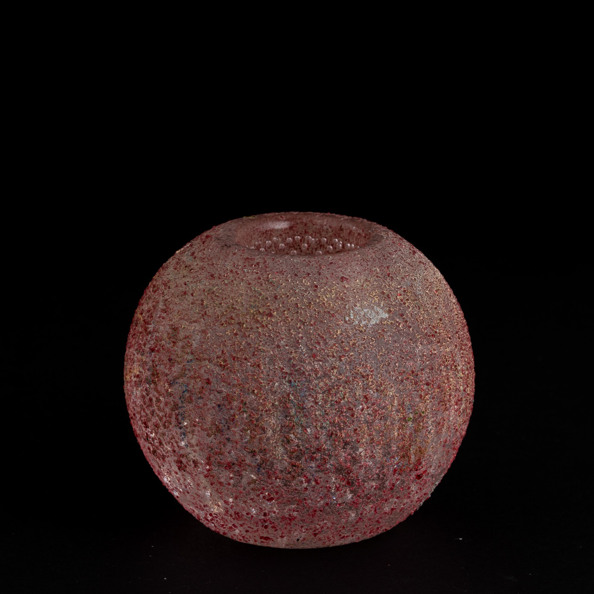 Portafiammiferi a sezione sferica in vetro pesante con applicazione di polvere policroma.