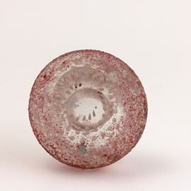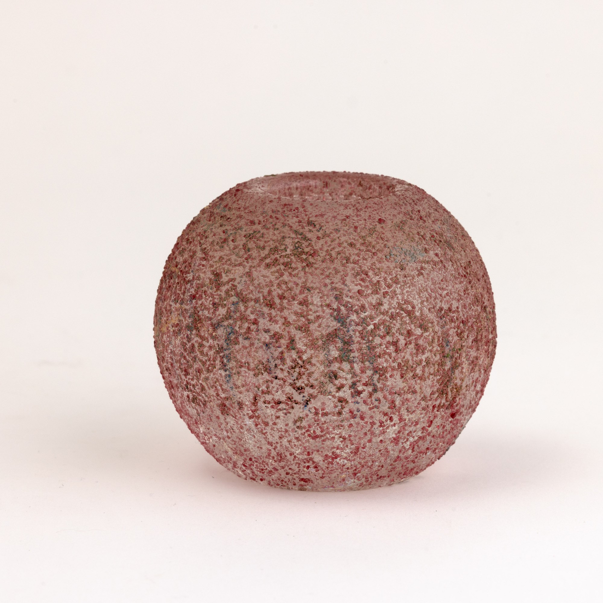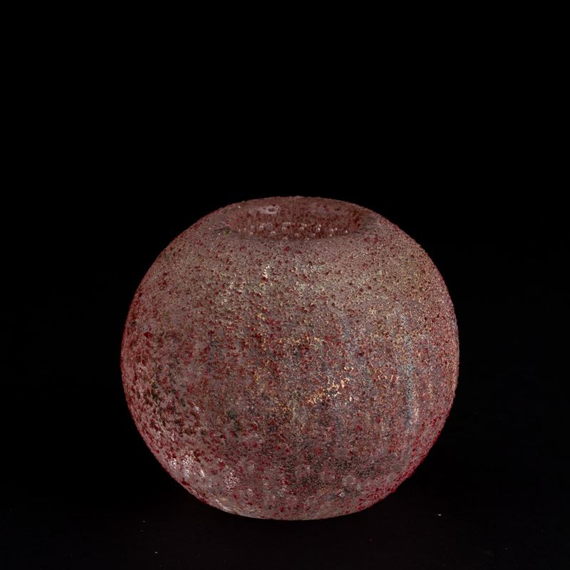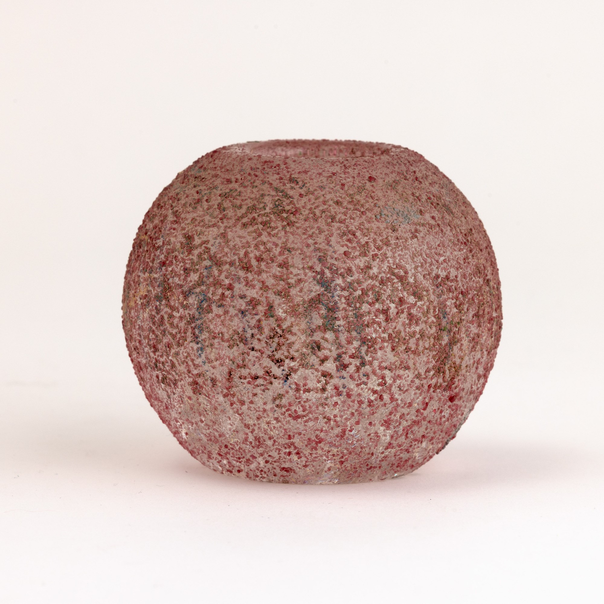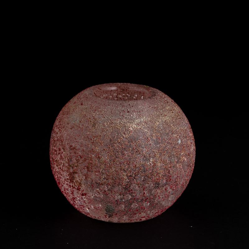 Portafiammiferi a sezione sferica in vetro pesante con applicazione di polvere policroma.
