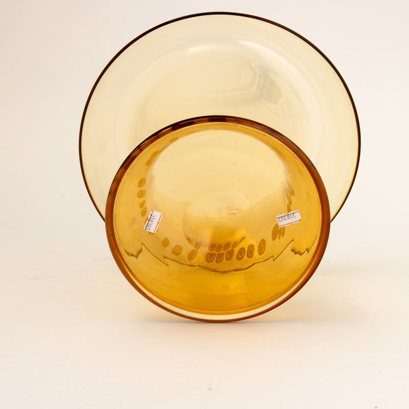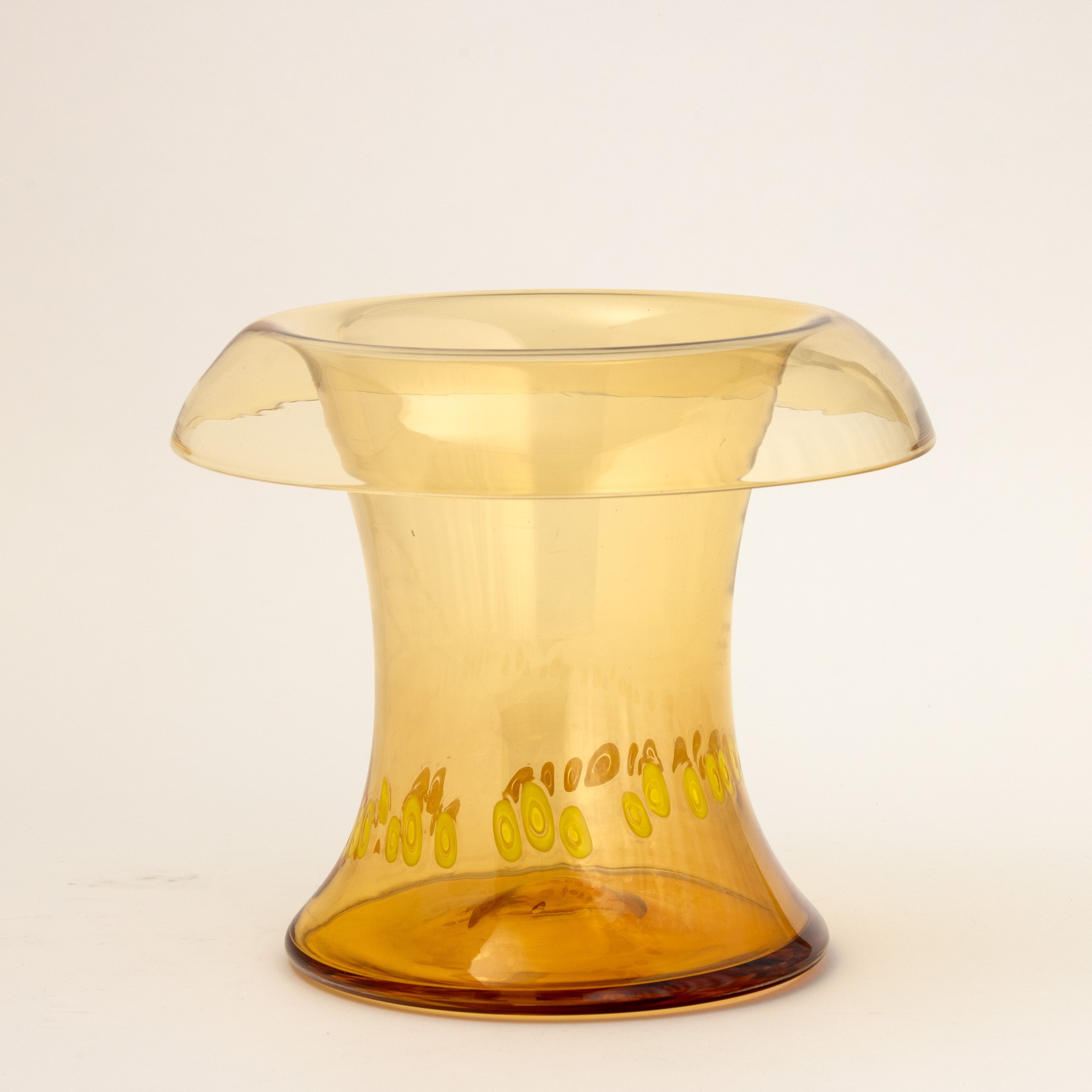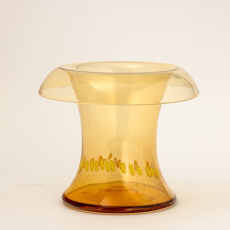 Grande vaso in vetro soffiato con bocca svasata e decoro di fascia di murrine ovale.