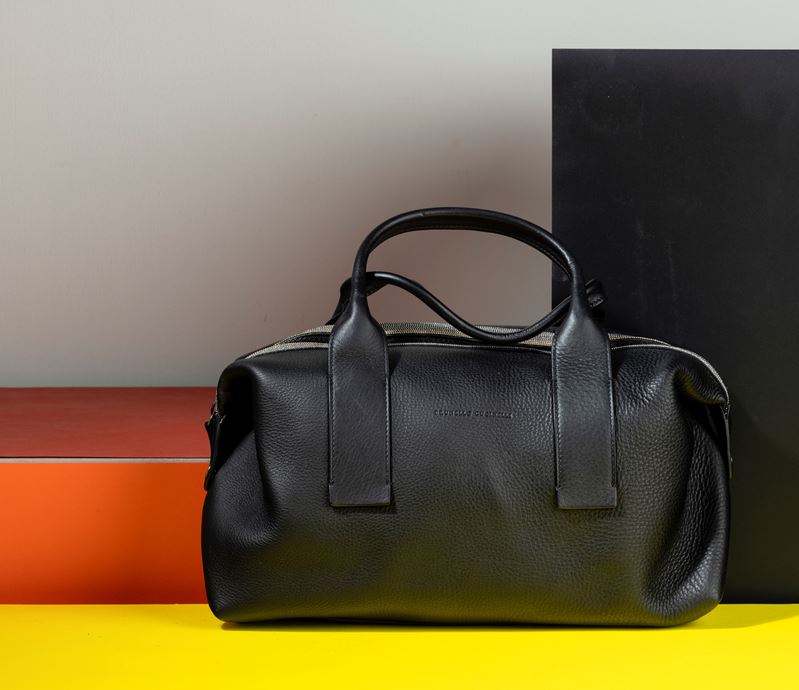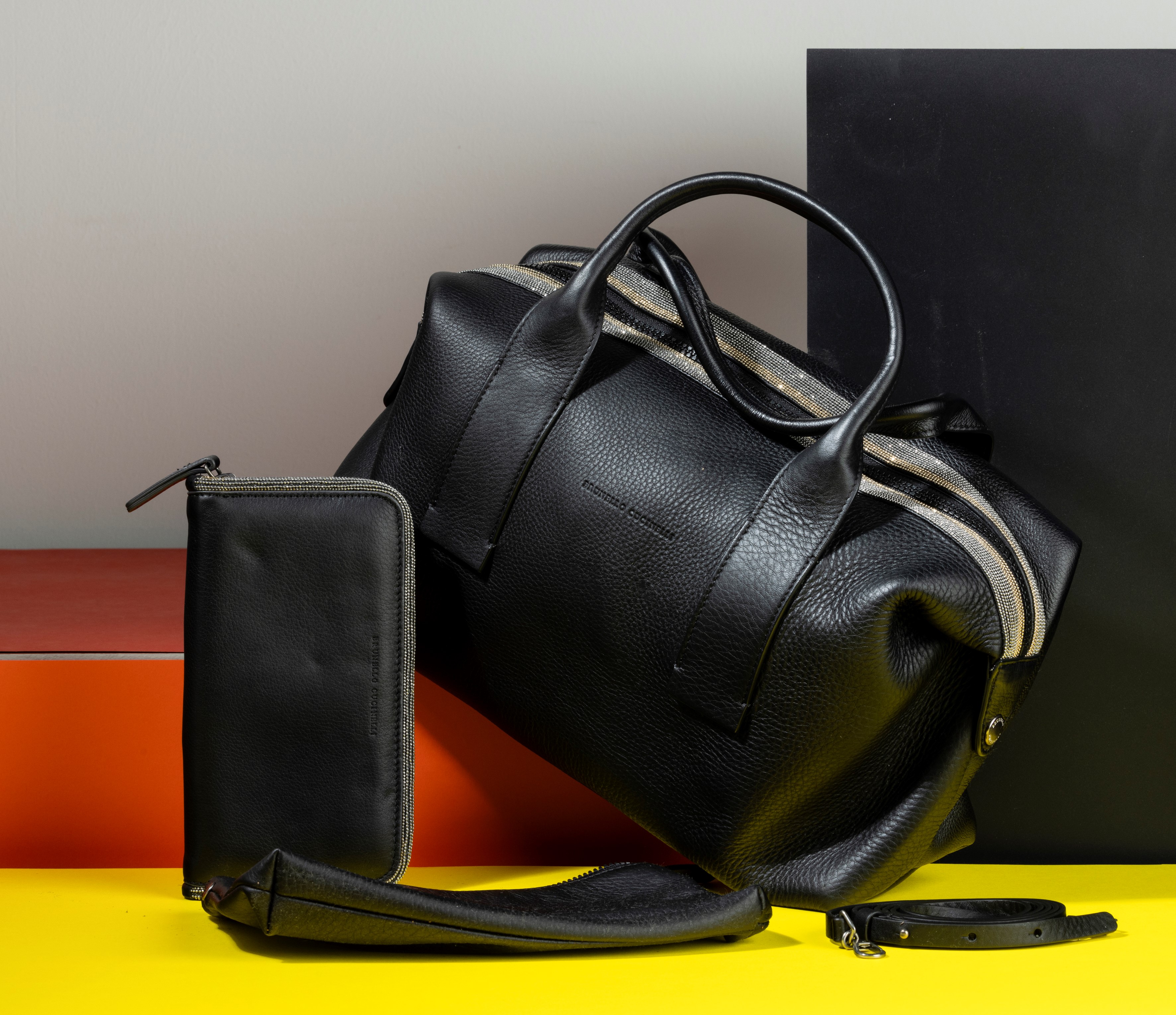 Brunello Cucinelli Borsa oversize in pelle martellata, con applicazione di fasce brillantinate e con portafogli abbinato, [..]