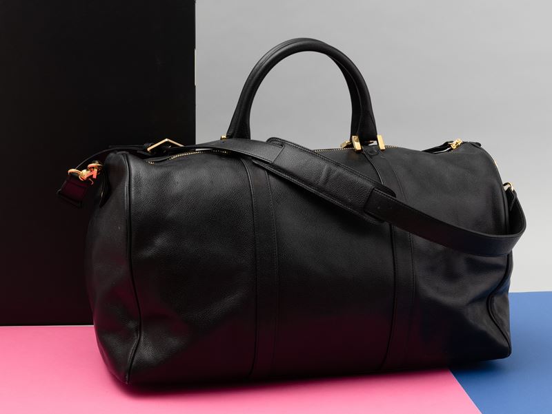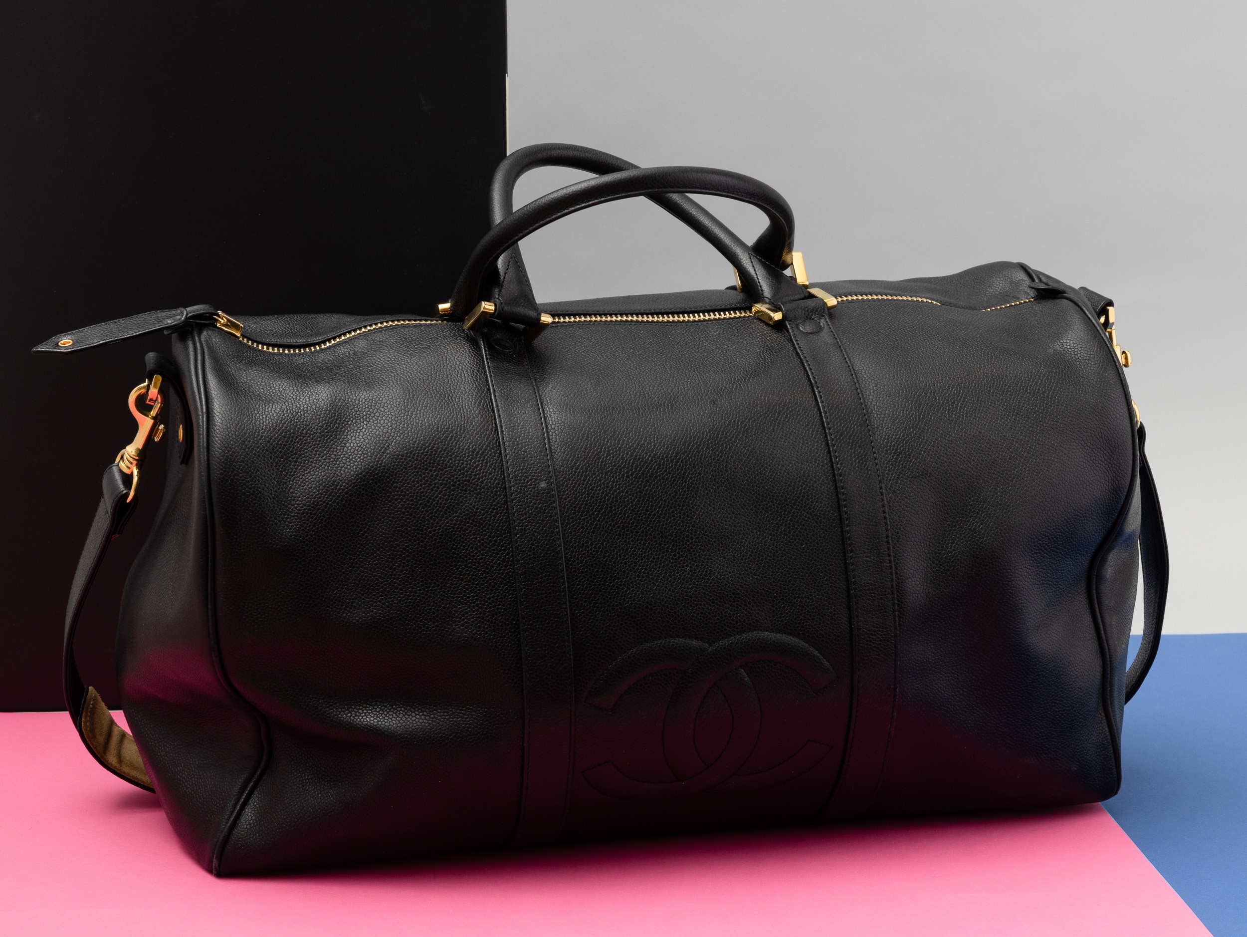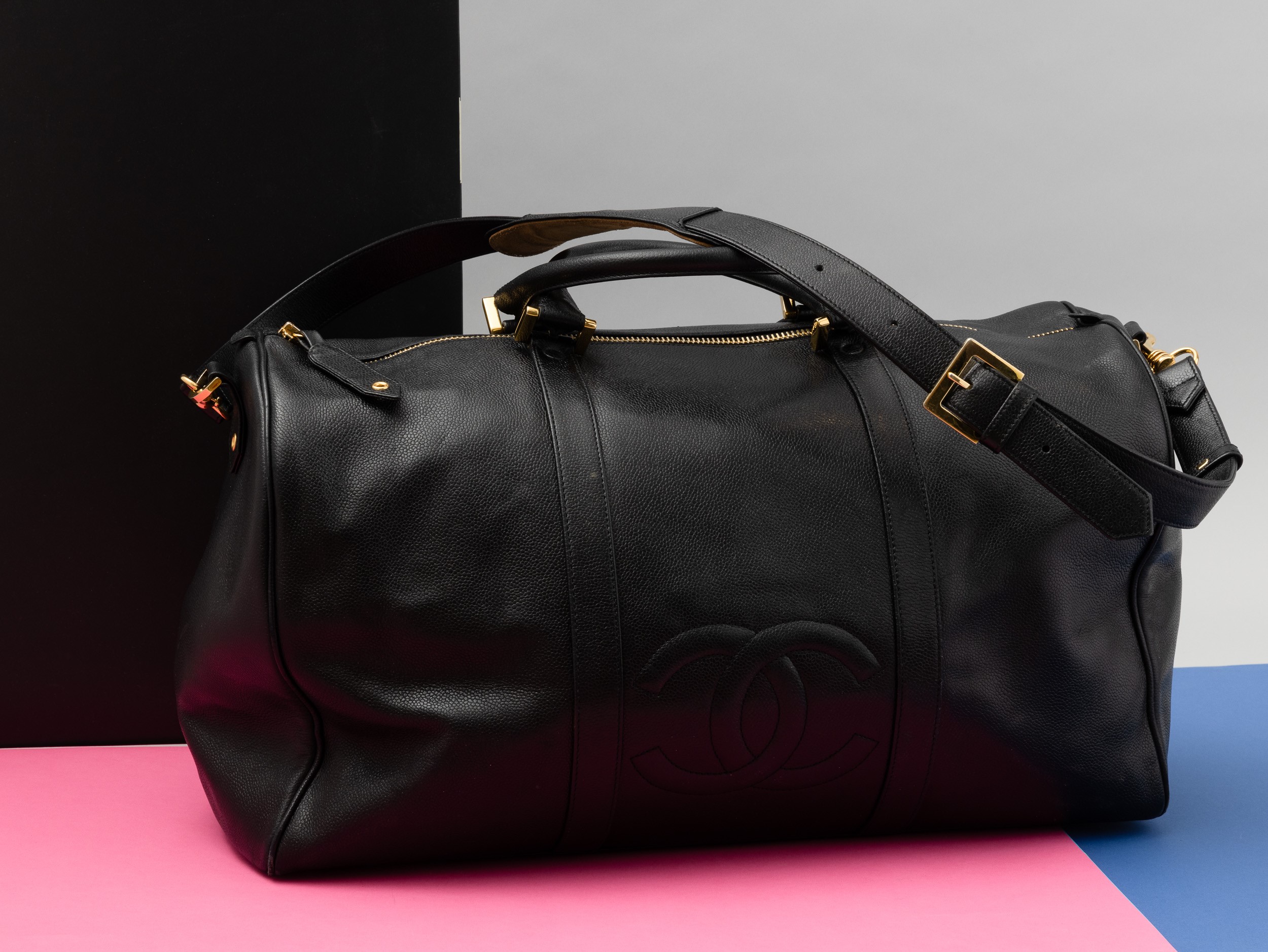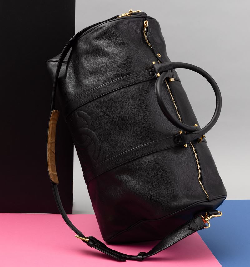Chanel Borsone da viaggio in pelle nera con tracolla, codice chanel 4896947, difetti, in ottime condizioni