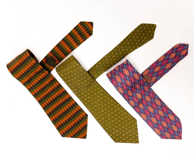 Hermes lotto di 3 cravatte in seta