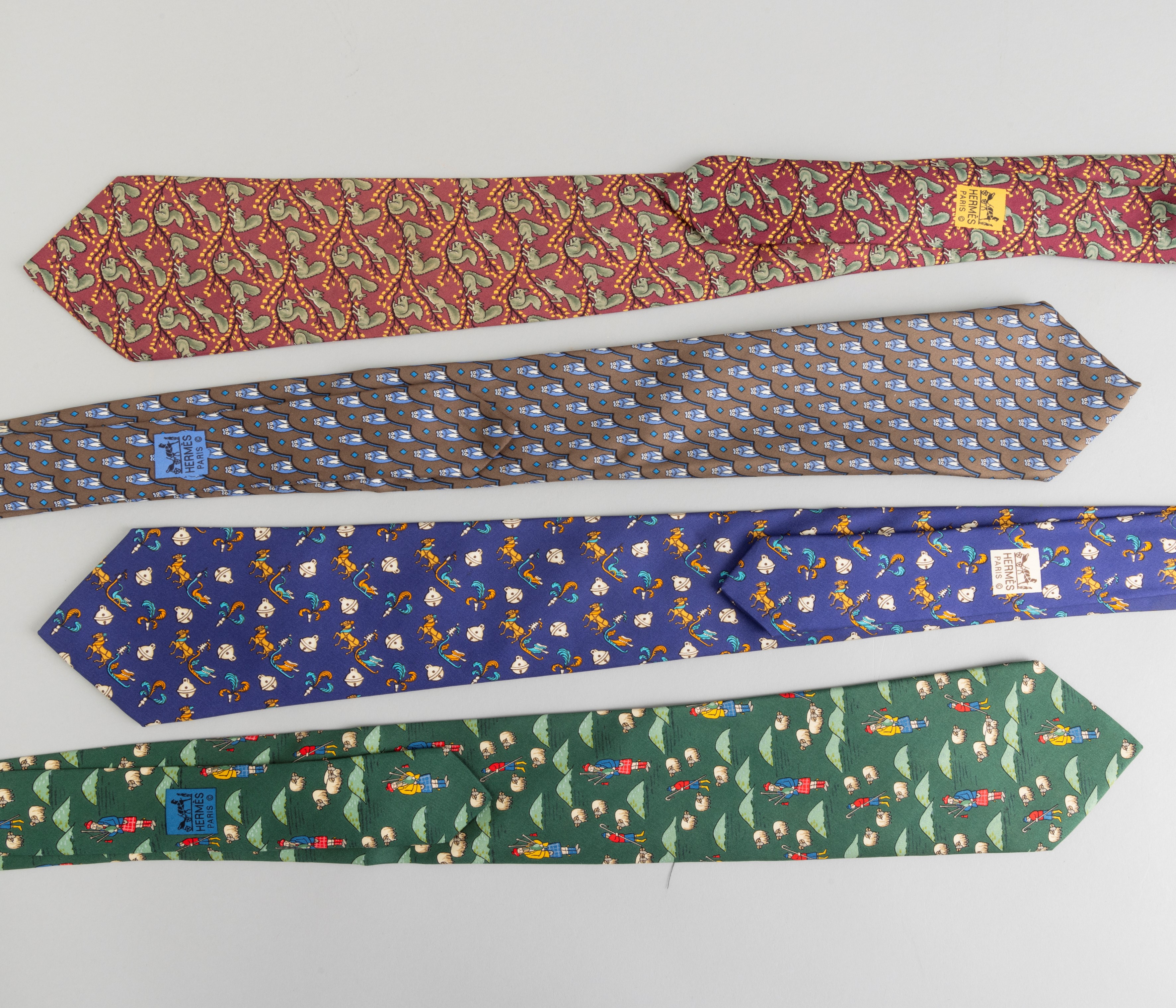 Hermes Lotto di 4 cravatte in seta, difetti