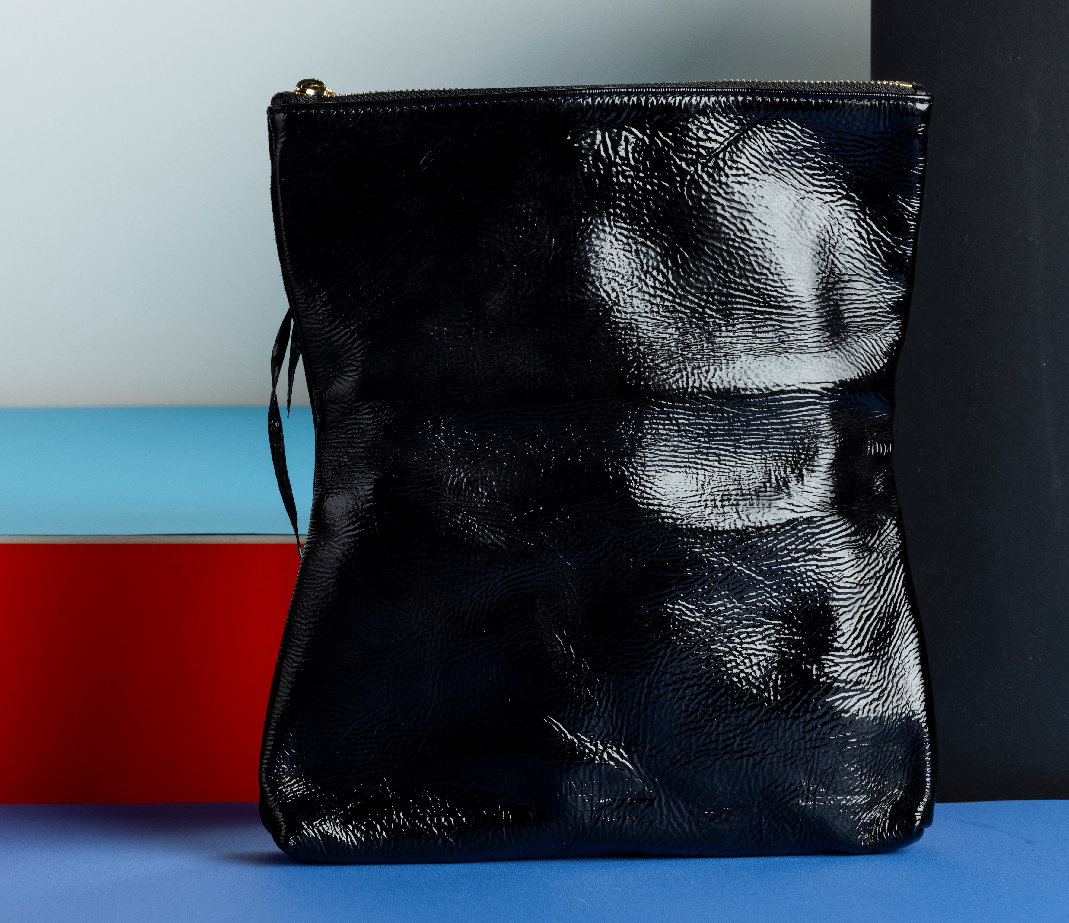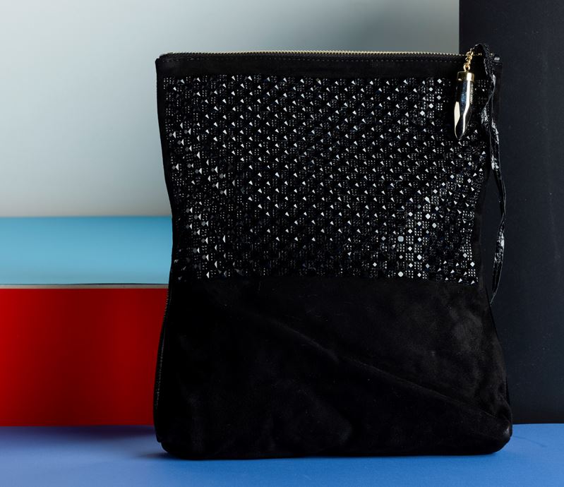 Jimmy Choo Pochette a busta in tessuto e pelle con applicazioni di perline, mis aperta h 30 cm, difetti, in ottime condizioni, con certificato di autenticità, dustbag