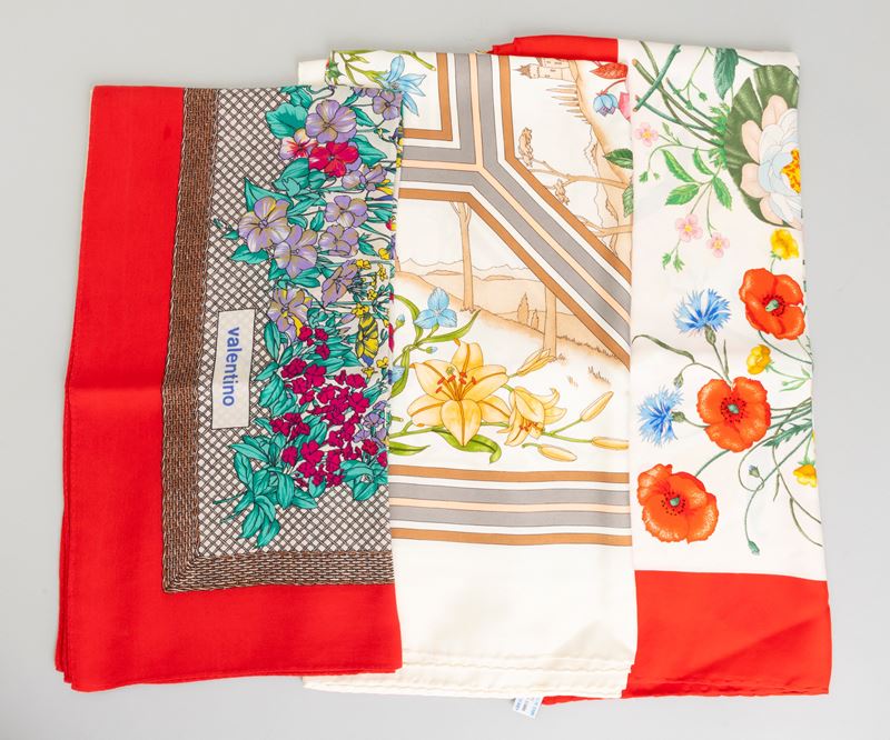 Lotto di 3 Foulards di cui 1 Valentino e 2 di Gucci, difetti