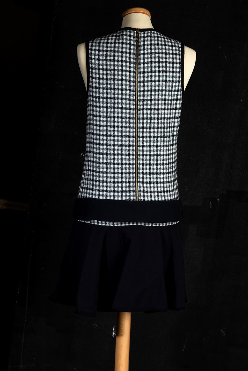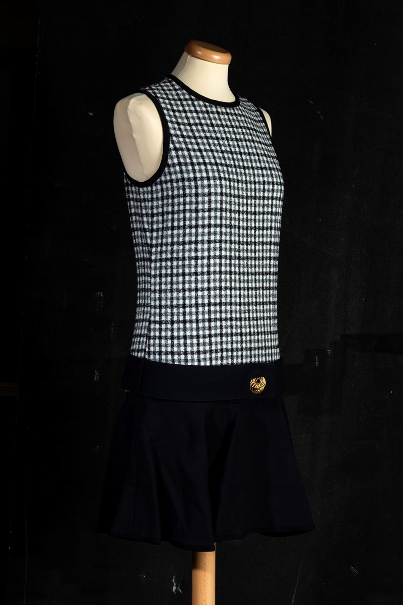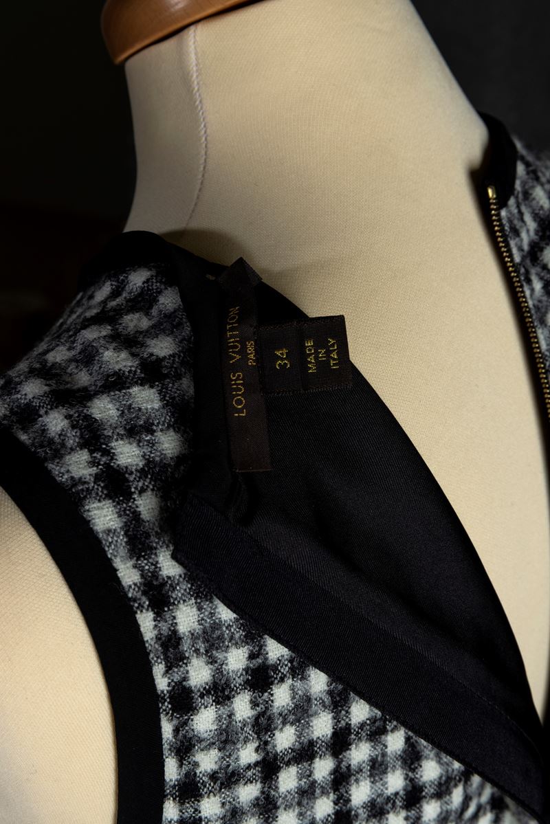 Louis Vuitton Abito nero con disegno a quadri bianco e nero in viscosa e lana, codice identificativo n. RW172W BYB FDDR19 TG 34
