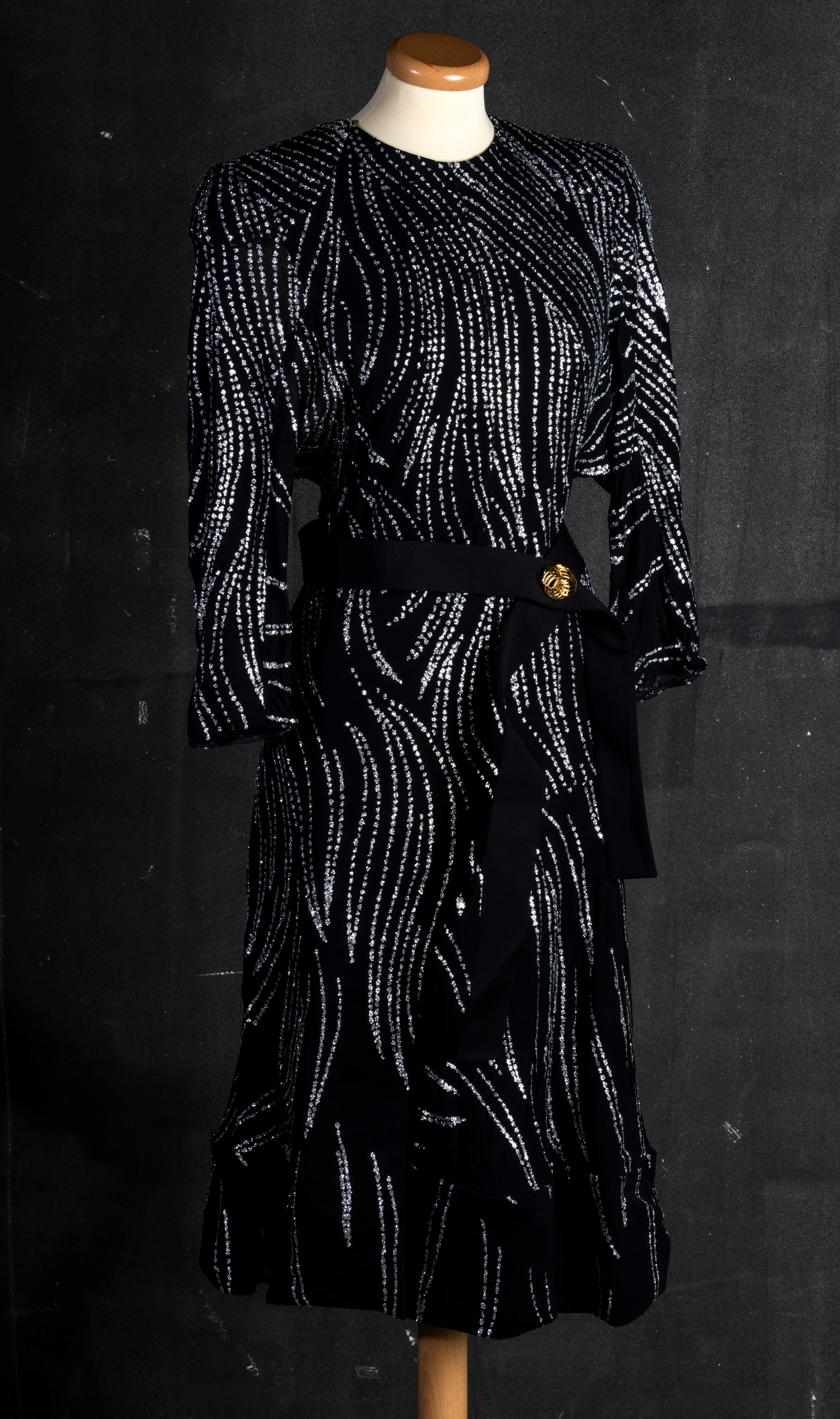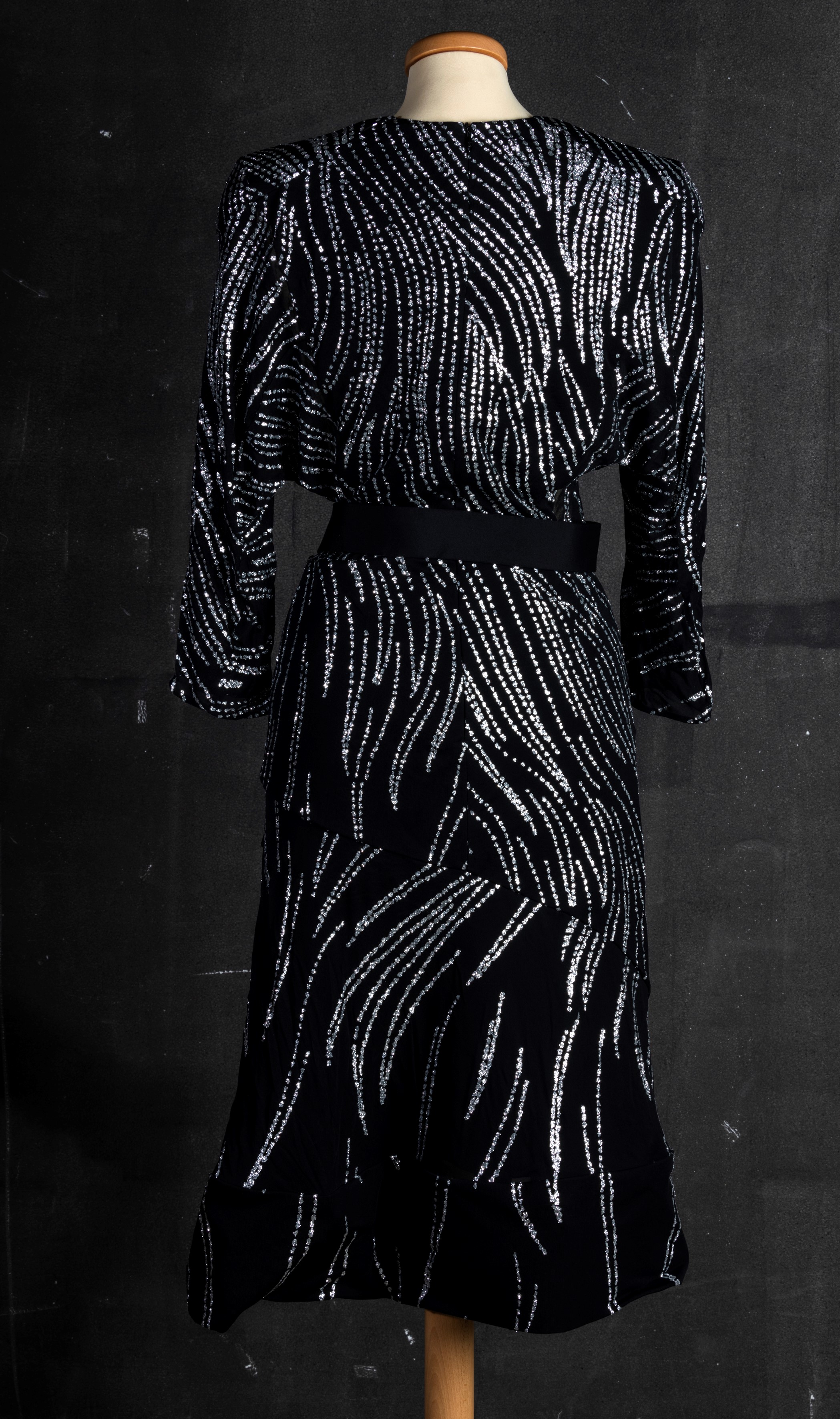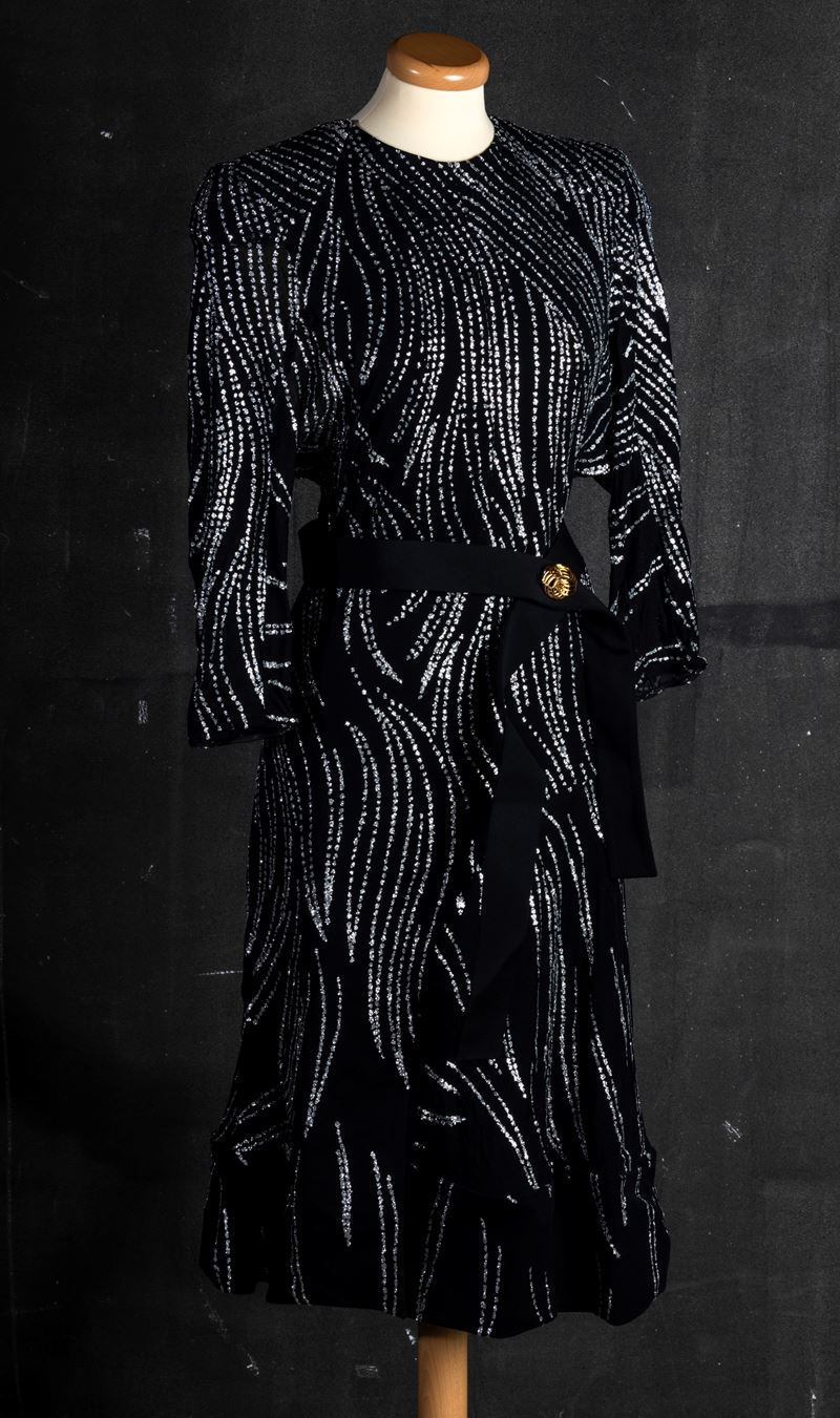 Louis Vuitton Abito nero con paillettes e cintura in poliestere e poliuritane - codice identIficativo n. RW171B ARR FBDB45 TG 34, difetti