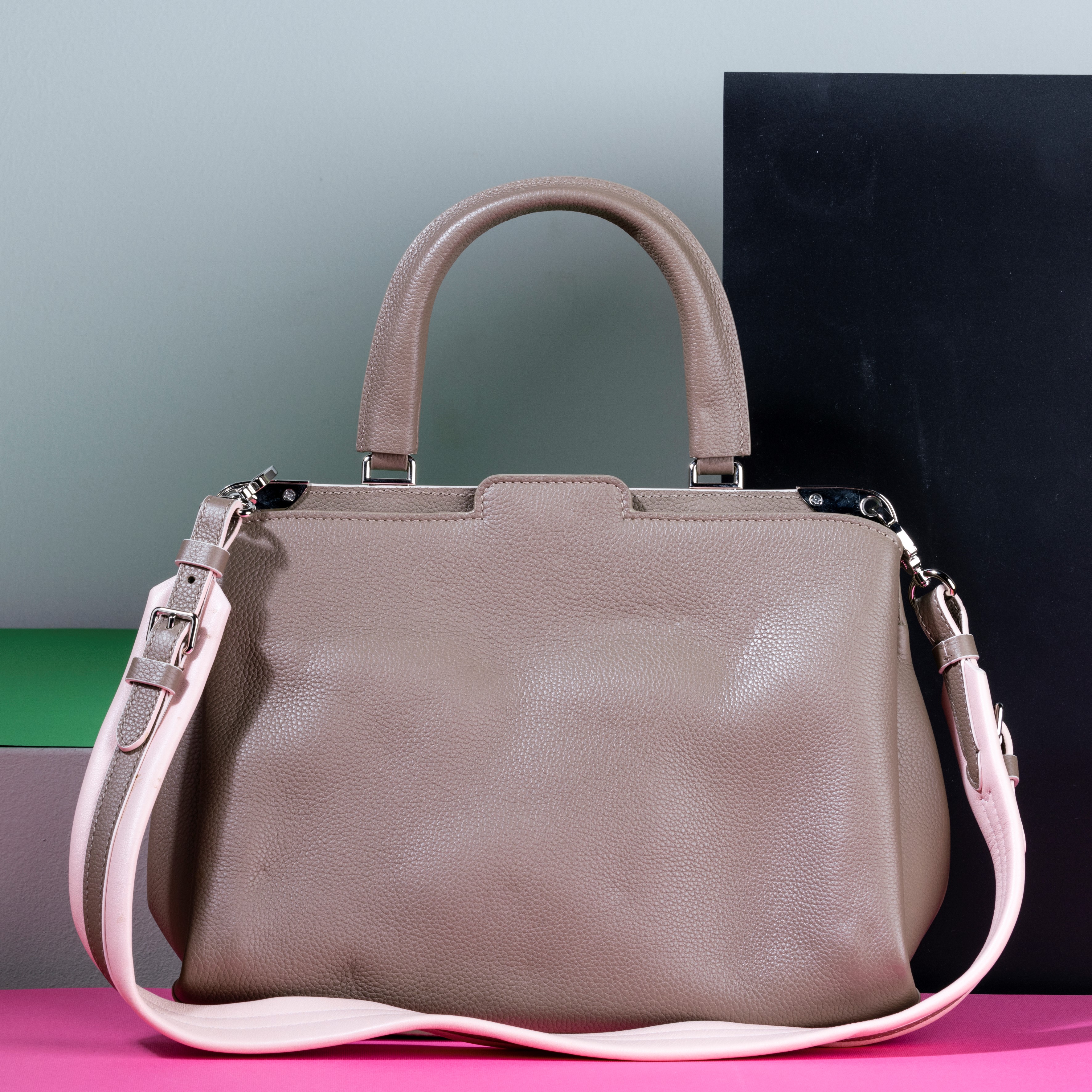 Louis Vuitton Borsa a mano Astrid in pelle tamburellata e tracolla staccabile color tortora e rosa, difetti, in buone condizioni, [..]