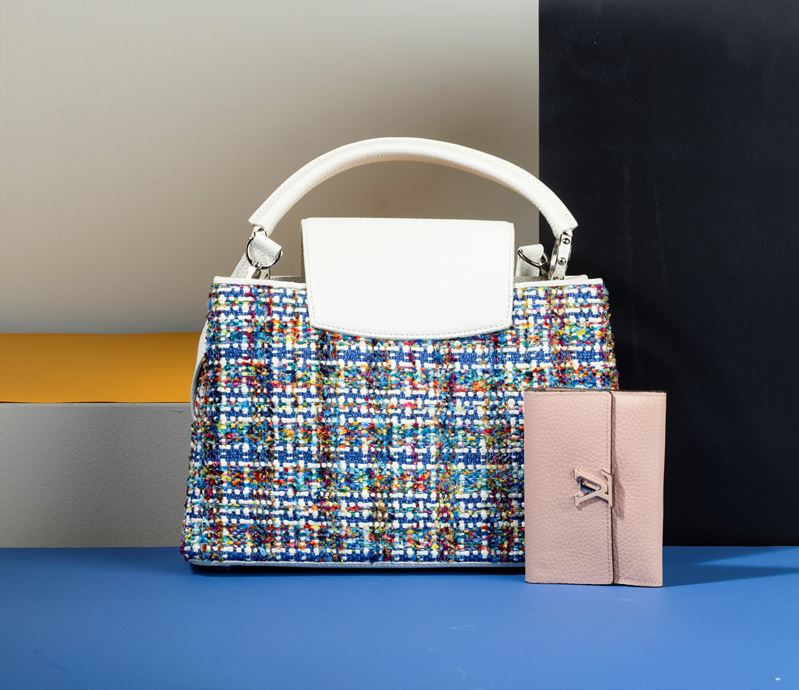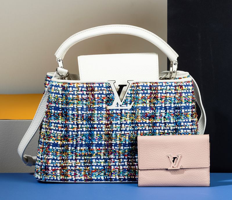 Louis Vuitton Borsa Capucines Limited Edition in pelle e intrecci colorati di lana, con tracolla e portafogli rosa, in ottime [..]
