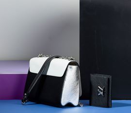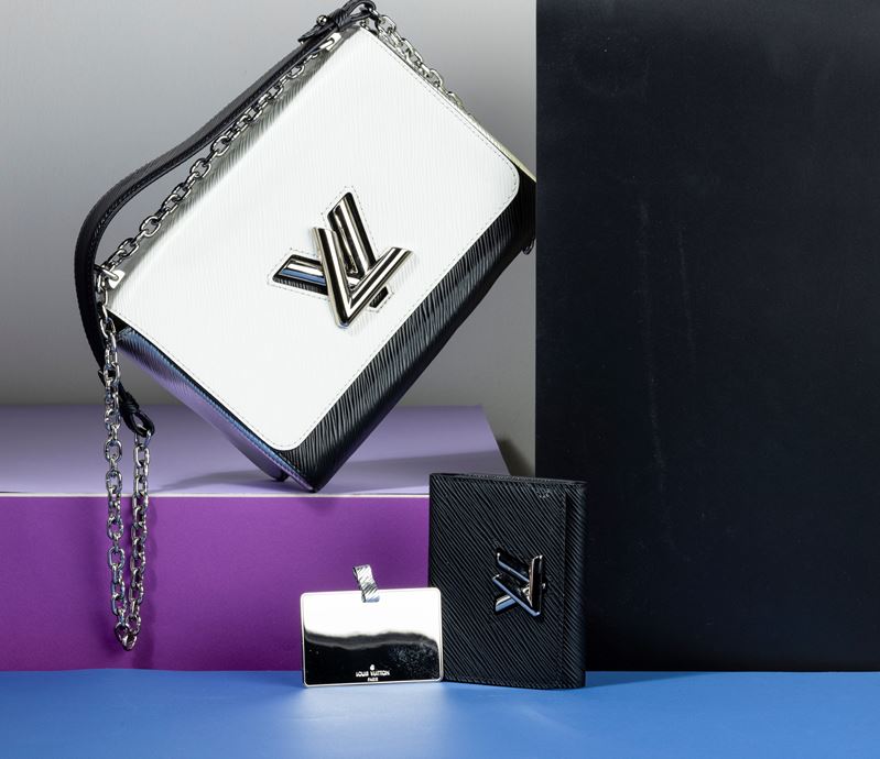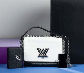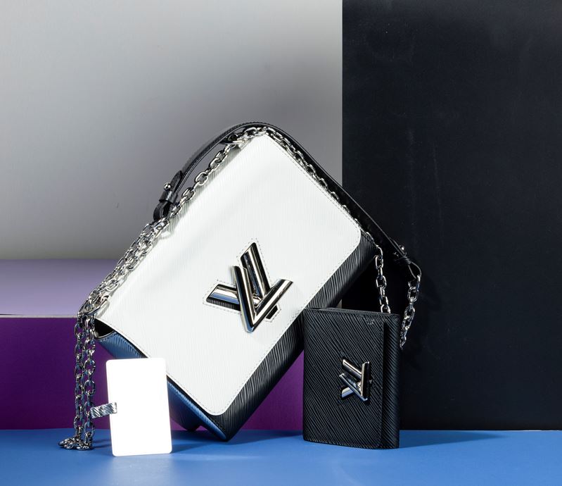 Louis Vuitton Borsa Donna Twist bicolore in pelle tote con specchietto e portafogli abbinati, laterali color argento, difetti, in ottime condizioni, dustbag