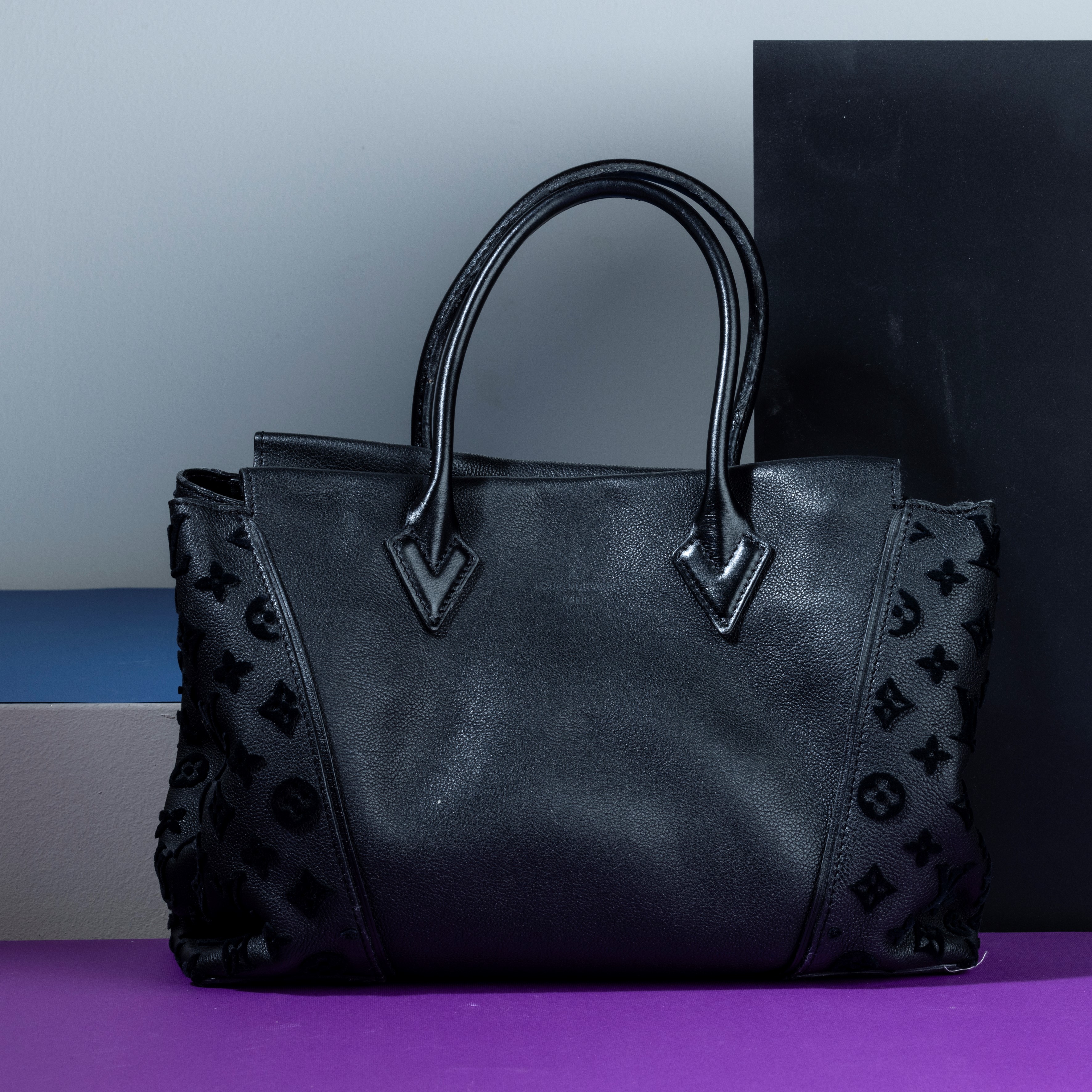 Louis Vuitton Borsa Tote con monogram a rilievo laterali, difetti ai manici e su un lato per caduta di colla dei manici, difetti, in condizioni discrete, dustbag