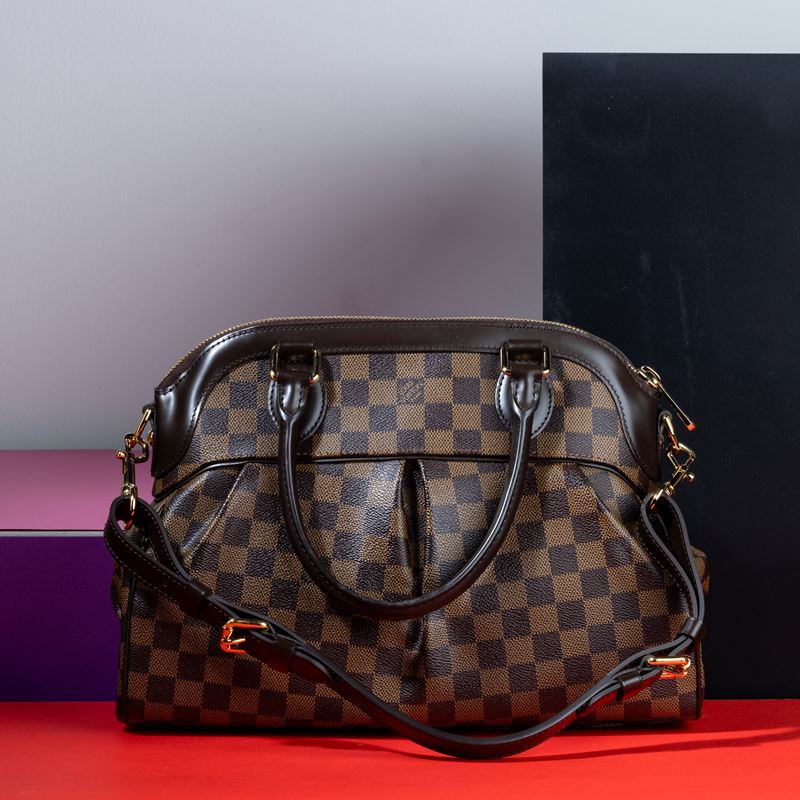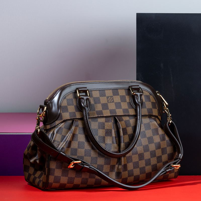 Louis Vuitton Borsa Trevi con disegno Damier Ebene in canvas con finiture in pelle con tracolla, difetti, NOS, dustbag