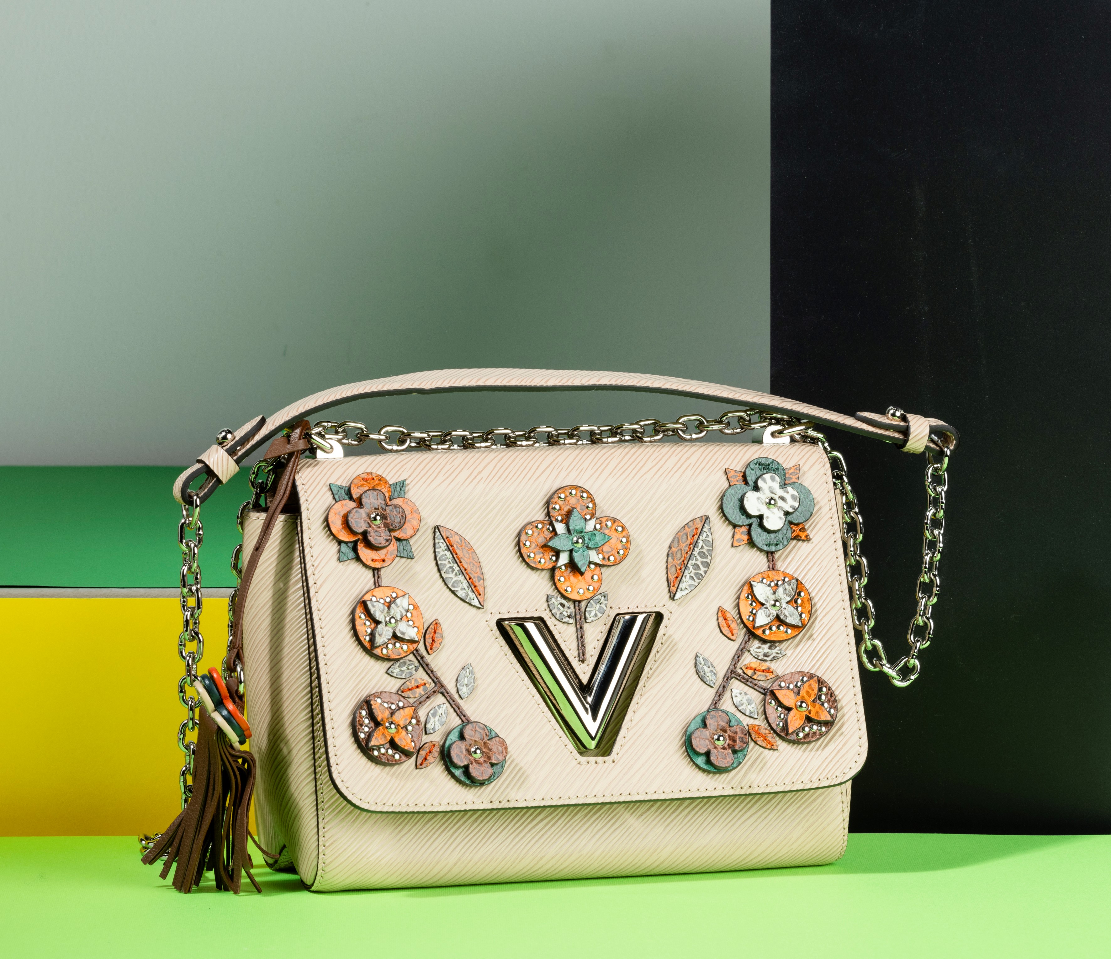 Louis Vuitton Borsa Twist in pelle Epi impreziosita da fiori monogram con portafogli abbinato, difetti, in buone condizioni, dustbag