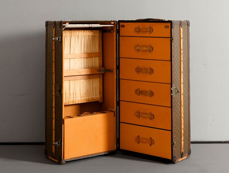 Louis Vuitton Canvas Monogram, modello verticale 'delux', completo in ogni parte, valigetta, grucce e appendiabiti scorrevoli, difetti, segni di usura del tempo, ma comunque in ottimo stato