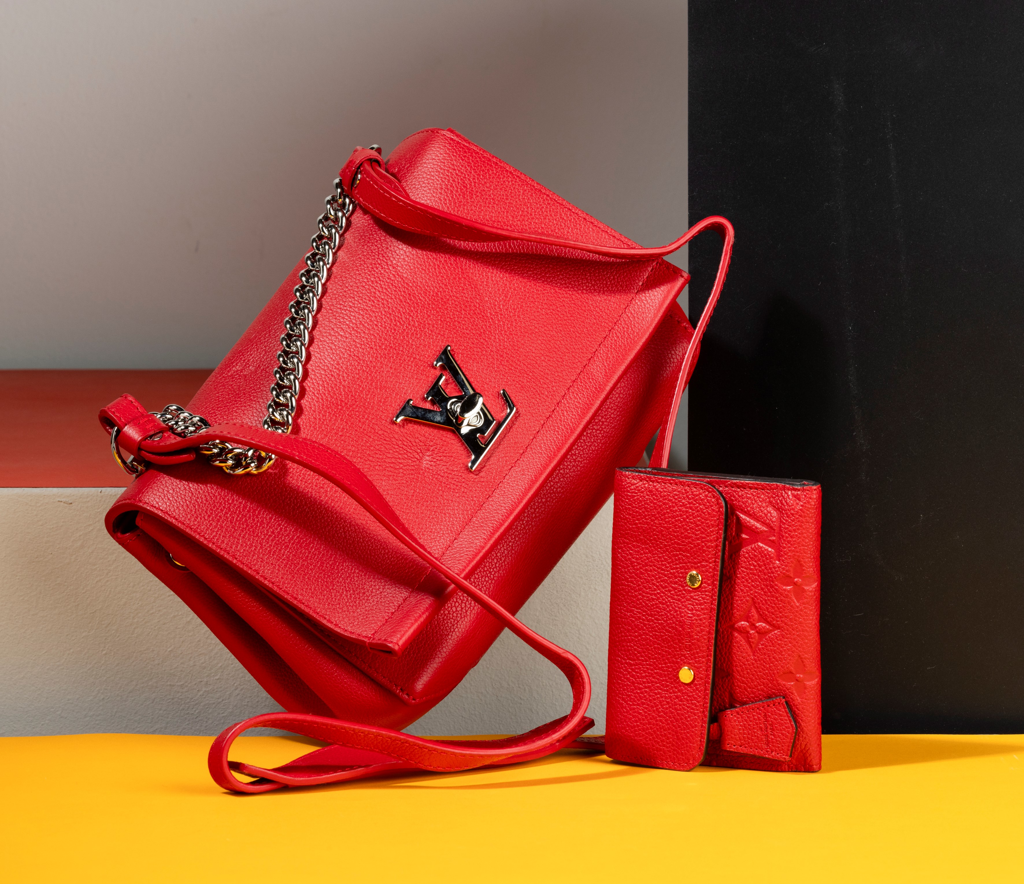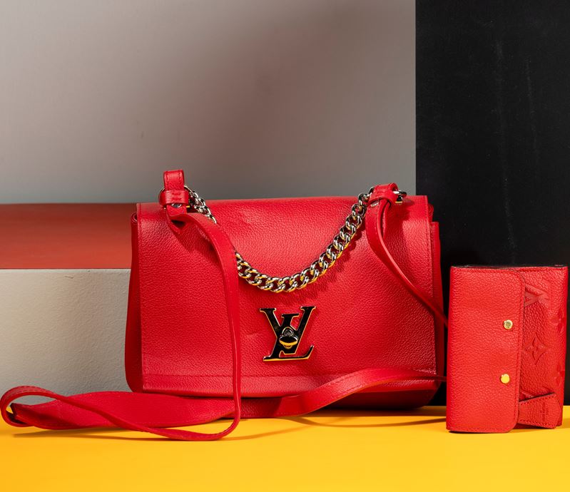 Louis vuitton Lock Me in pelle con tracolla e portafoglio abbinato monogram, difetti lievi, in ottime condizioni, dustbag