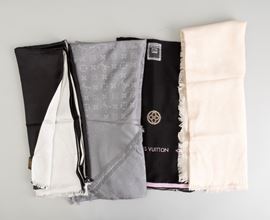 Louis Vuitton Lotto di 4 sciarpone di vari materiali, colori e misure, difetti