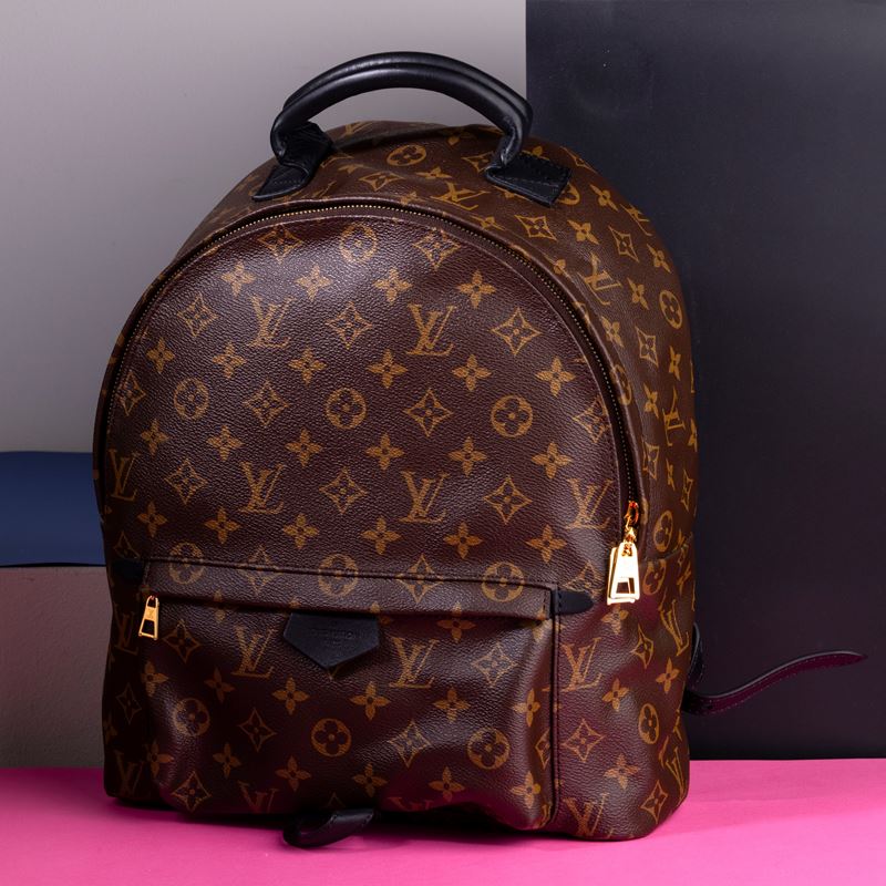 Louis Vuitton Palm Springs in canvas monogram marrone, maniglia e spalline in pelle nera parzialmente imbottite , in buono stato, piccoli difetti impercettibili, dustbag