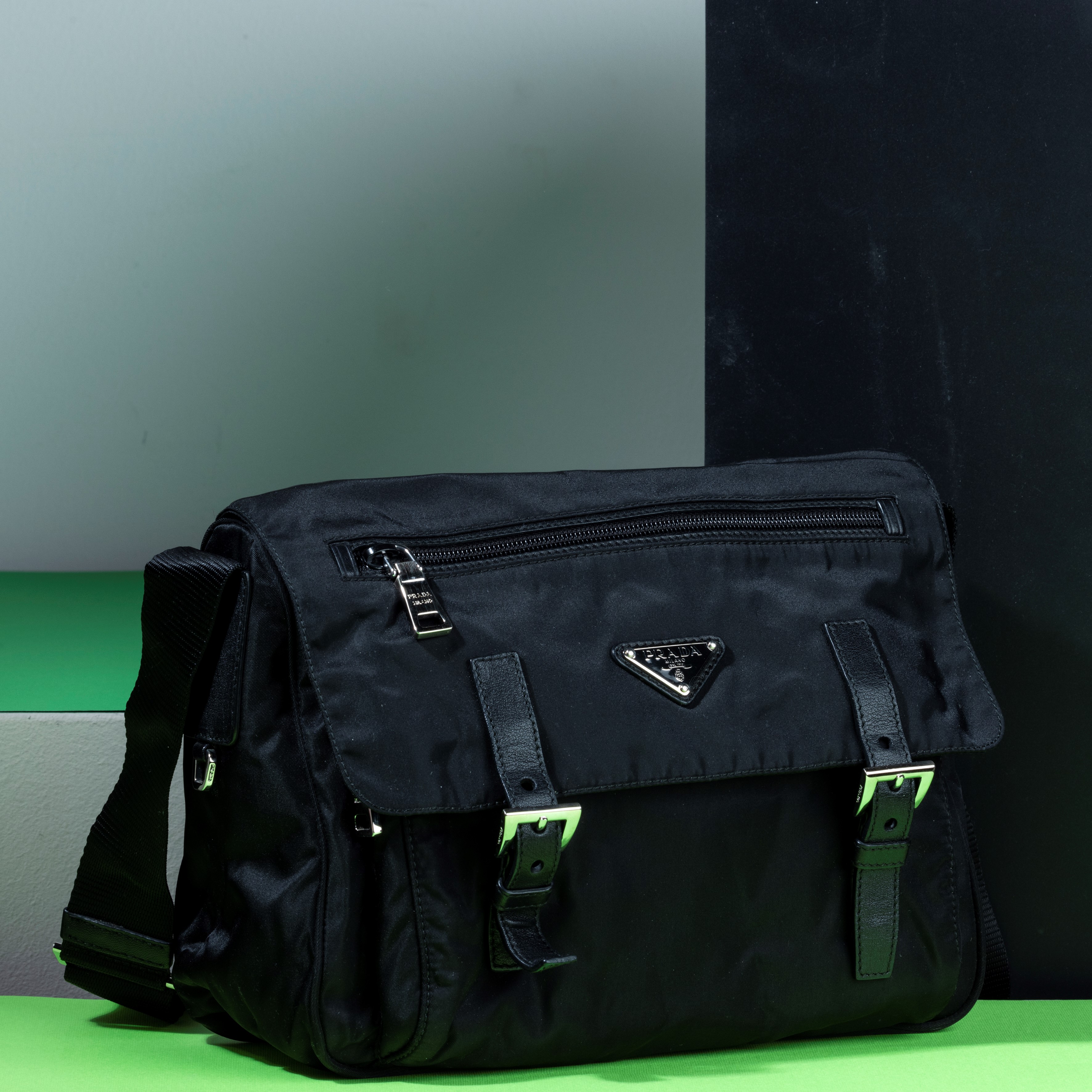 Prada Cartella in Re-Nylon (un filato di nylon rigenerato) e pelle, difetti, in ottimo stato, dustbag