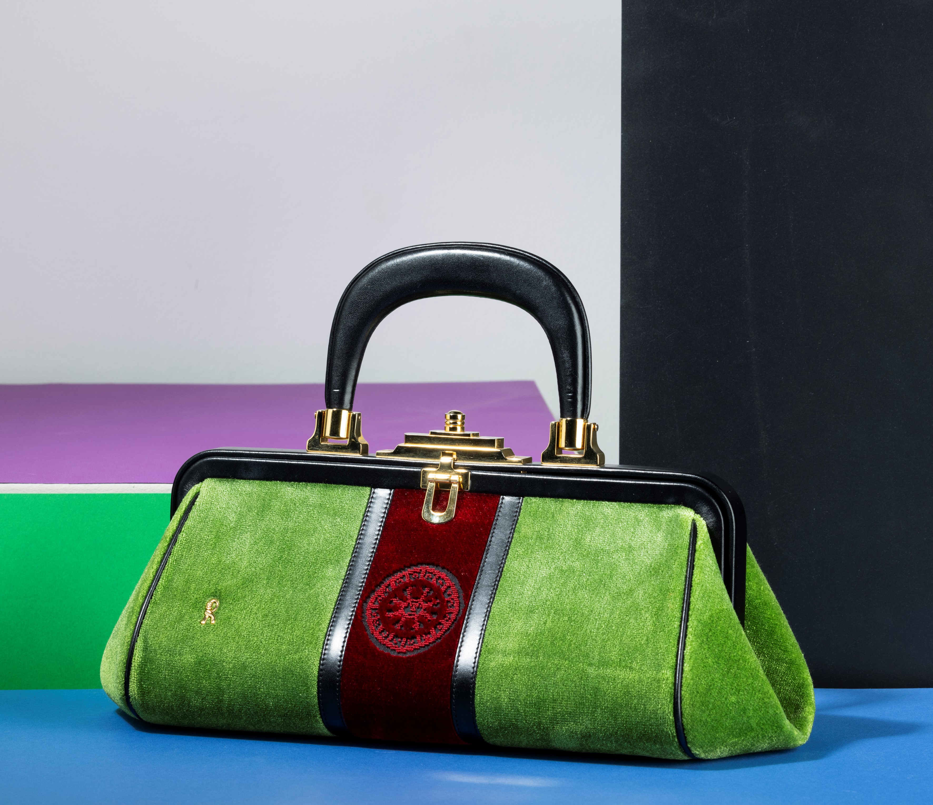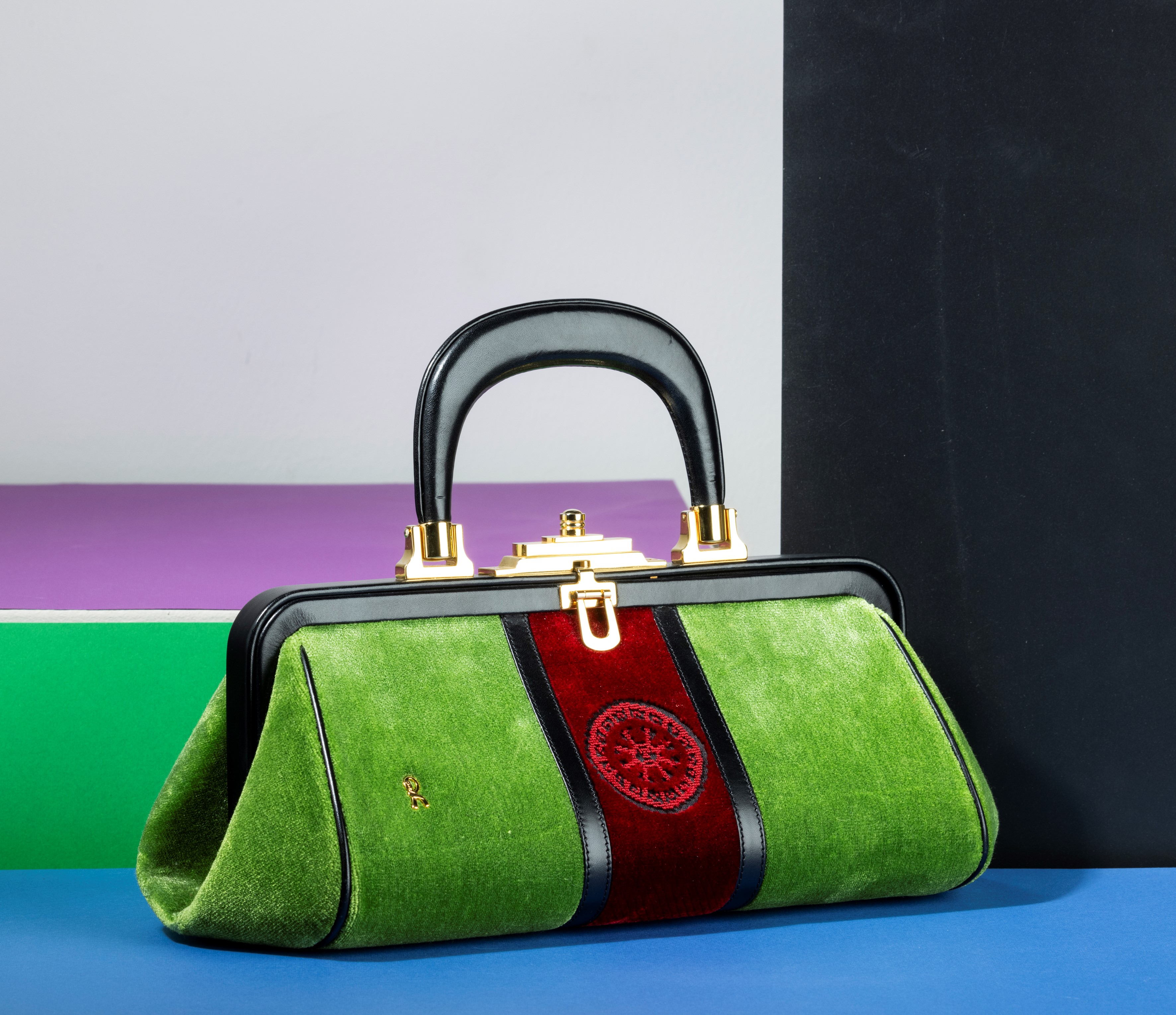 Roberta di Camerino Borsa media in velluto e pelle, difetti, in ottime condizioni, dustbag