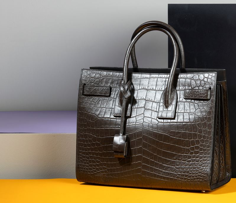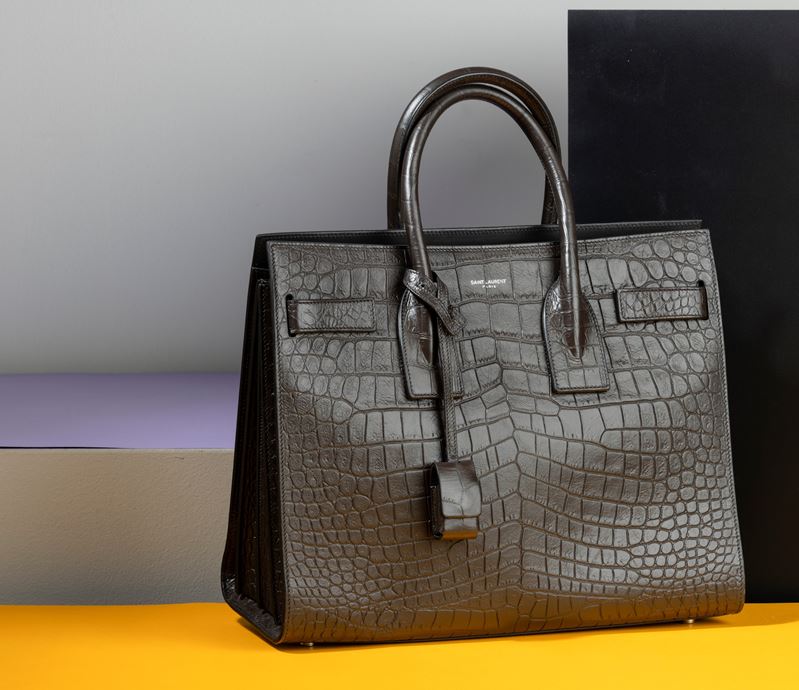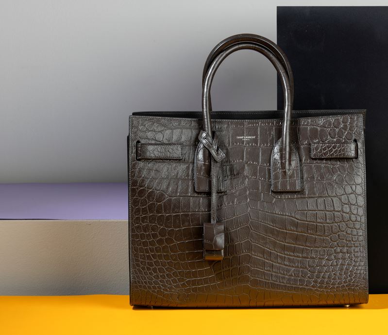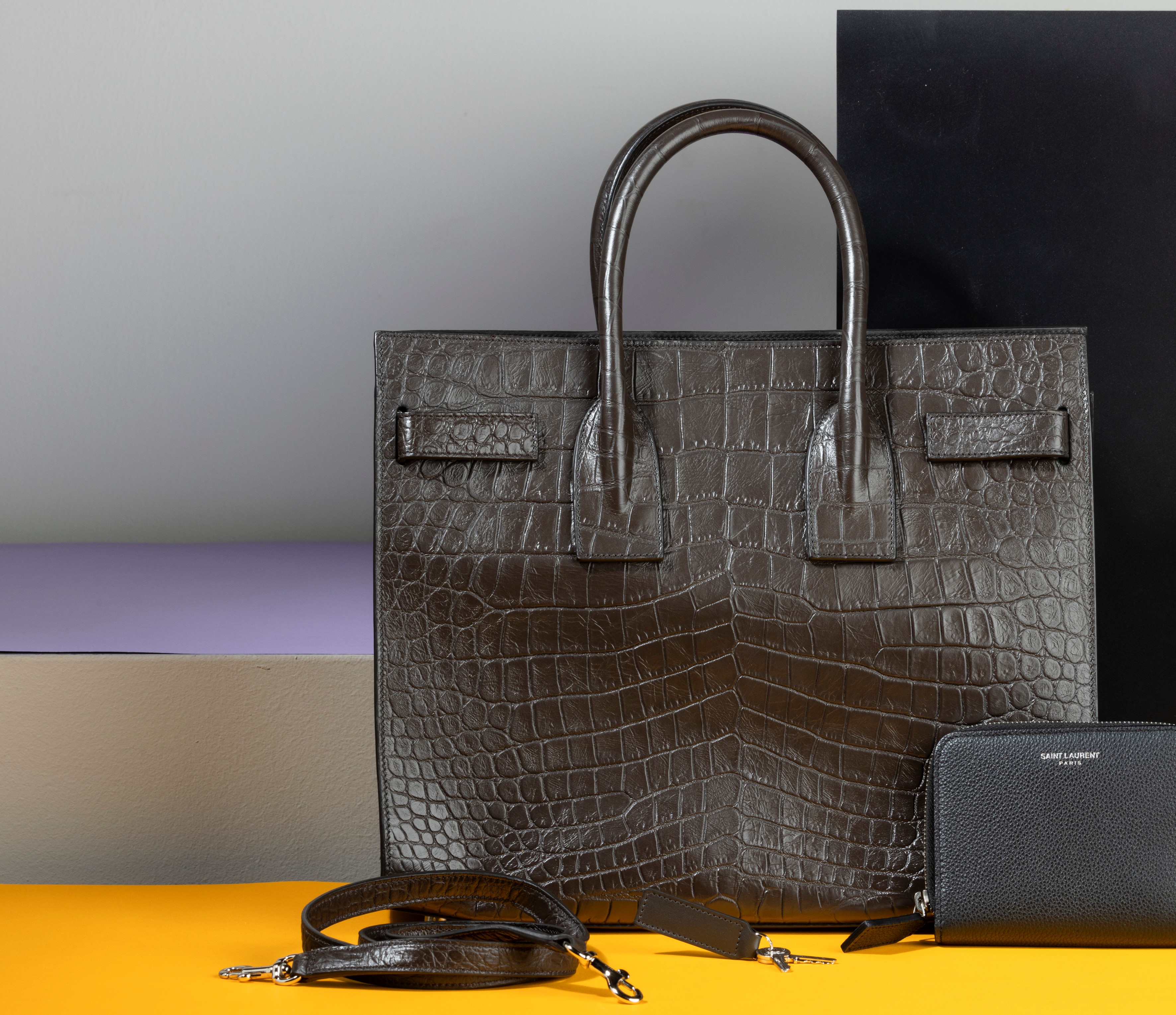 Saint Laurent Sac de Jour Borsa in pelle goffrata con stampa simil coccodrillo con tracolla e portafogli nero in pelle, in buoen condizioni, dustbag